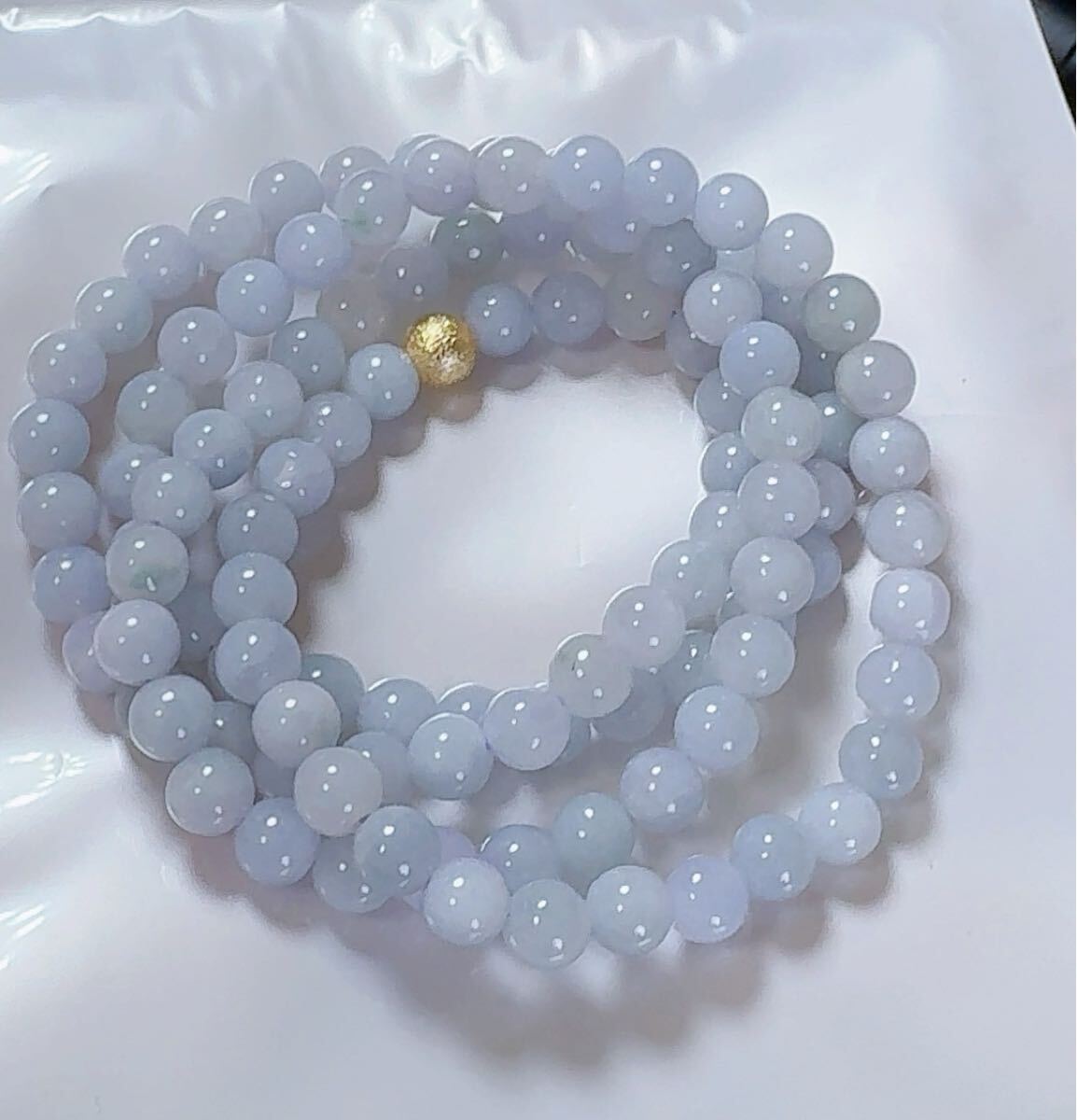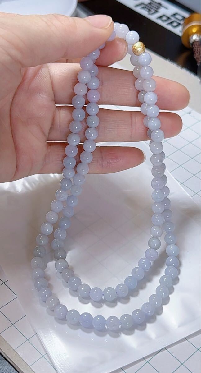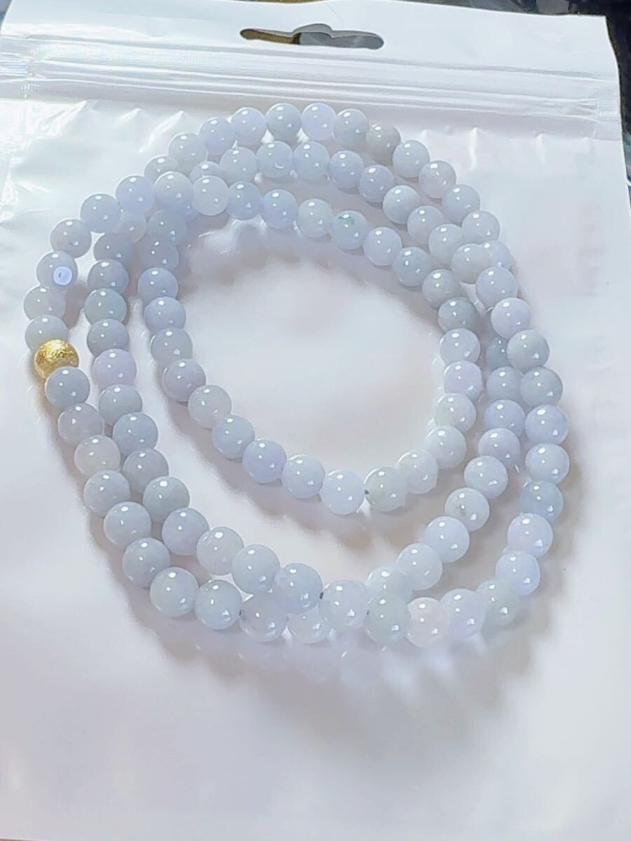 R2-01605天然本翡翠《本物保証》藍紫色翡翠 ネックレス約60cm 天然石6.0mm 宝石 一点物 超希少 縁起物 お守り パワーストーン
