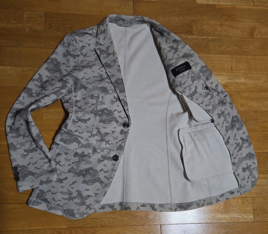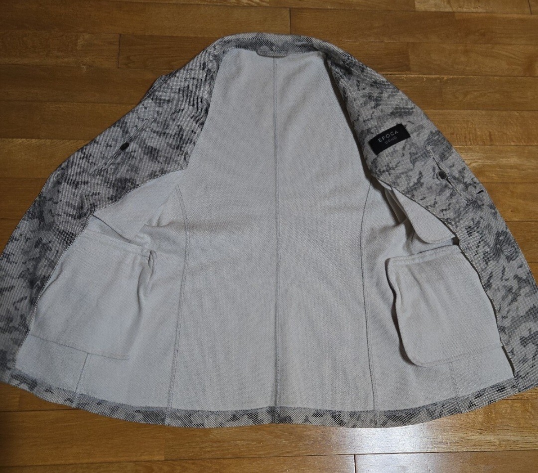 ☆エポカウォモ/EPOCA UOMO 厳選最高級◎『エンボス調カモフラ柄 コットンストレッチ』生地 快適な着心地◎グレー ジャケットです。お色は春夏時期に重宝するグレートーン。sizeは44(S-M位)です。
