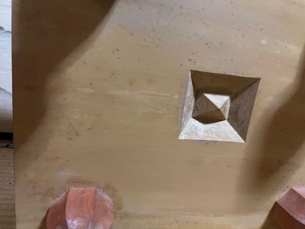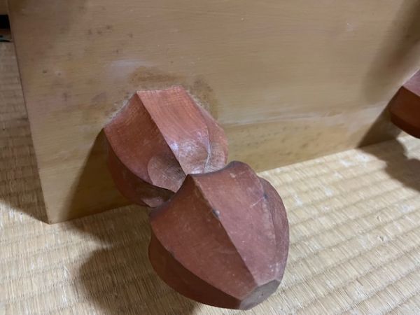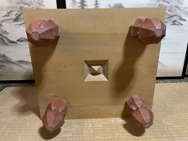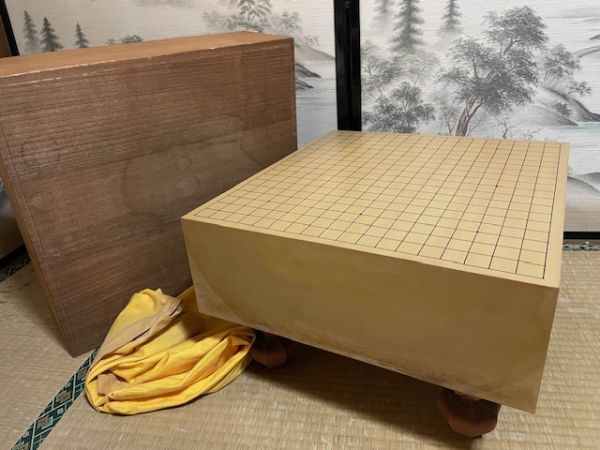 ●囲碁 脚付 へそ付 囲碁盤 19路盤 板厚14.5cm 布覆い・桐覆い付 45.5 ×42.3cm 脚付盤 一枚板 木製 柾目 追柾?木裏面 八角脚 現状品●140