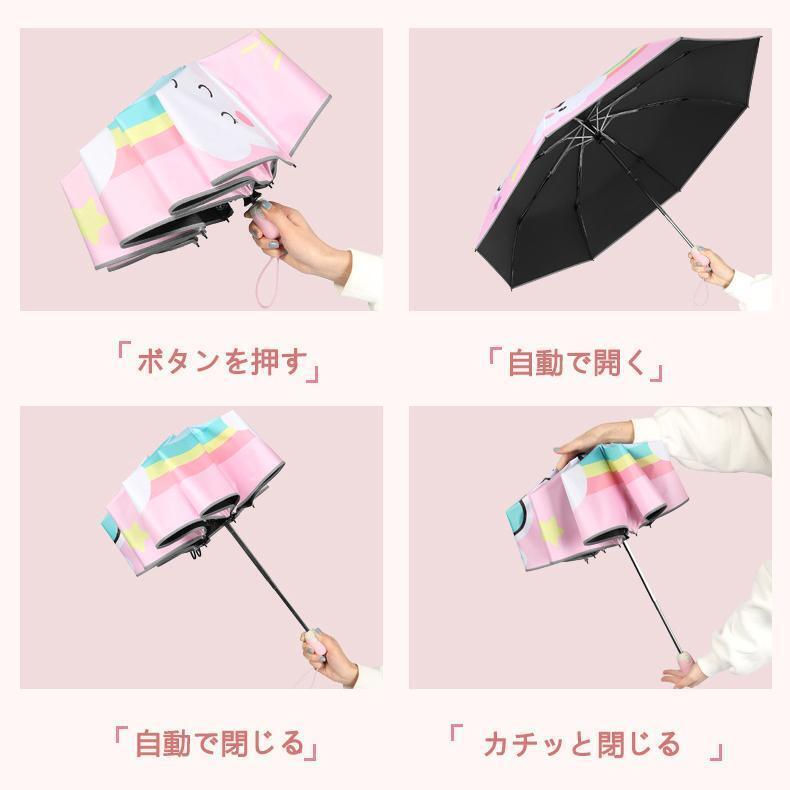 ユニコーンデザインの折り畳み傘、UVカット99.9%で撥水性あり。