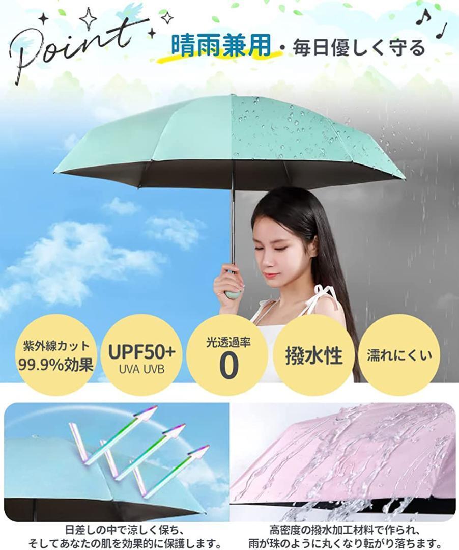 「テフロン塗装、超強撥水性」210T高密度NC布で作れた、撥水性に優れ、軽く振るだけで雨水を振り払えます。傘布は皺が生じにくく、いつでもファッションな外観を保持します。濡れた傘の収納ポーチ付きます。訪問先や電車バスに乗る際のわずらわしさが解消されます。紫外線から守る特殊材料を採用し、かなりの紫外線を吸収します。90%以上のカット率があります。日差しが強い日の対策として、急に天候が変わっても安心できます。高密度で防水性の高い素材を採用し、撥水性に優れている折りたたみ傘です。