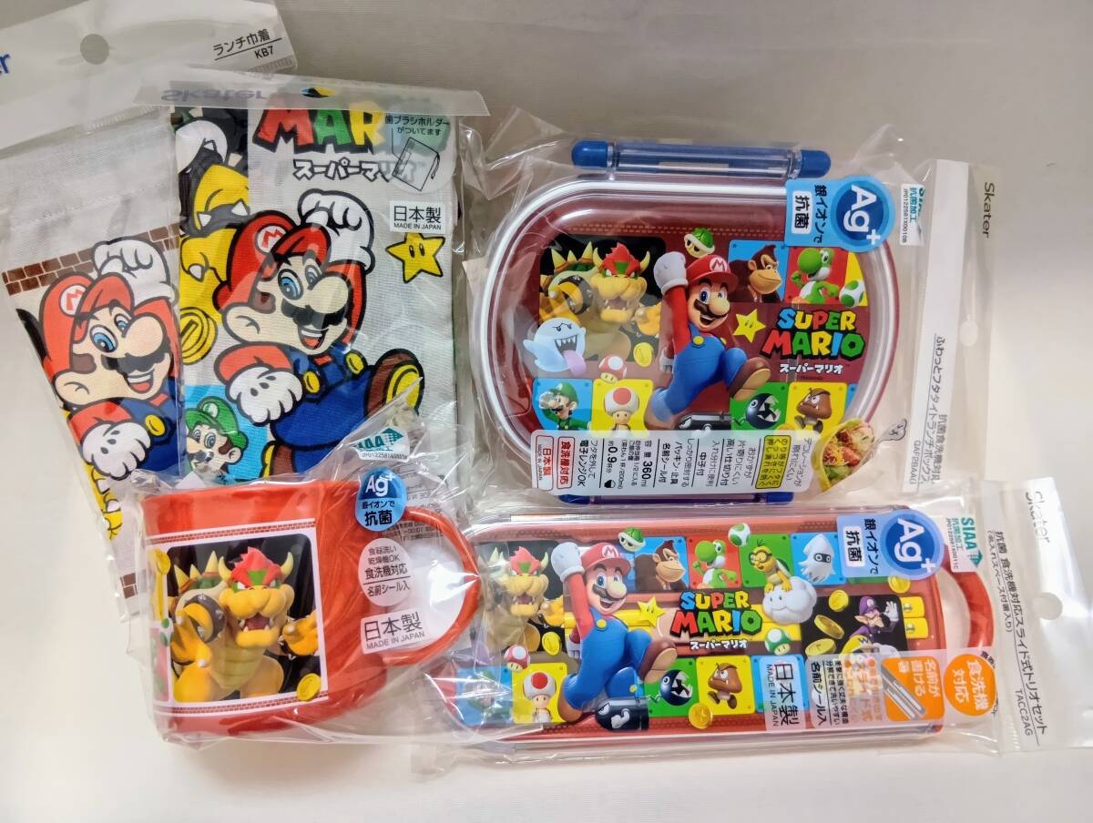 | スケーター(Skater)の新品未開封の子供用キャラクターランチボックスセットです。 お弁当箱・トリオセット・コップ・コップ入れ・お弁当バッグの5点セット。 ニンテンドーの人気ゲームソフト スーパーマリオブラザーズのマリオ・ルイージ・キノピオ・ヨッシー・ドンキーコング・クッパたちのデザインです。赤色・レッド系。 同シリーズでのセット品ですので、こどもの入園準備や入園入学セットとしておすすめです。 幼稚園・保育園の運動会や遠足の準備にも。 その他のキャラクター360mlお弁当箱5点セットも出品中です♪ スーパーマリオのお弁当箱セット♪ ゲームキャラクターのお弁当箱セット♪ 男の子におすすめのお弁当箱セット♪ <セット内容>〔シリーズ名:スーパーマリオ23〕 ①【抗菌ふわっとフタタイトランチボックス 1段 360ml/QAF2BAAG】 中子付き。フタを外して電子レンジ可。食洗機対応。名前シール付。 ●容量:360ml(中子1個付き) ●商品サイズ約:横148×奥行123×高さ56mm ●日本製 ●JAN:4973307622243 ②【抗菌トリオセット/TACC2AG】 スライド式のお箸・フォーク・スプーンとケースのセット。 食洗機対応。名前シール付。 ●商品サイズ約:ケース198×76×17mm、箸16.5cm、スプーン・フォーク13cm ●重さ:150g ●日本製 ●JAN:4973307622236 ③【ランチ巾着/KB7】 巾着袋のお弁当入れ。 ●商品サイズ約:290×165×120mm ●品質表示:綿100% ●日本製 ●JAN:4973307622359 ④【抗菌プラコップ/KE4AAG】 飲料用、歯磨き用のカップ。 電子レンジ可、食洗機対応。名前シール付き。 ●容量:200ml ●商品サイズ約:直径74×68mm(取っ手含まず) ●日本製 ●JAN:4973307622267 ⑤【コップ袋/KB62】 ●サイズ約:横148×縦205mm ●品質表示:綿100% ●日本製 ●JAN:4973307622342 ==== 参考価格:定価5,775円(税込合計、送料別) その他注意事項: ・バラ売りには対応していません。即購入OKです。 ・送料込みの出品ですのでお値下げ交渉はご遠慮ください m(_ _)m ・すり替え防止のため不具合以外の理由での返品は受け付けておりません。 ・上記ご理解いただける方のみ購入をお願いします。 Nintendo Super Mario Bros. Japanese Lunch Bento Box Set with Bag for Toddlers Kids Boys キャラクターお弁当箱セット出品中♪ |