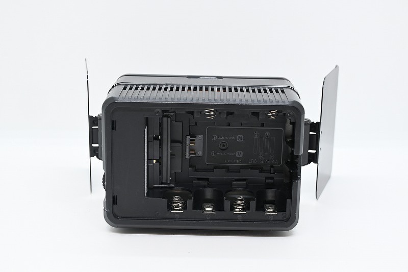 ハンディカム”用Vバッテリー、α用Mバッテリー、単三乾電池4本と、3つのバッテリーに対応しますが、全て別売です。