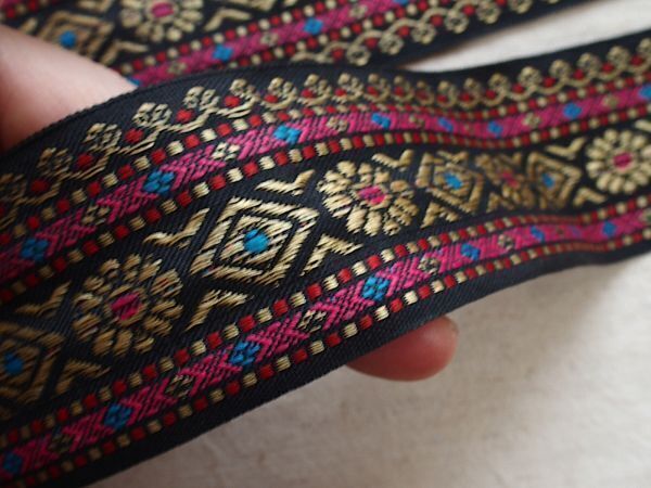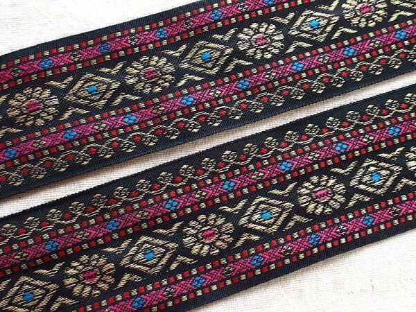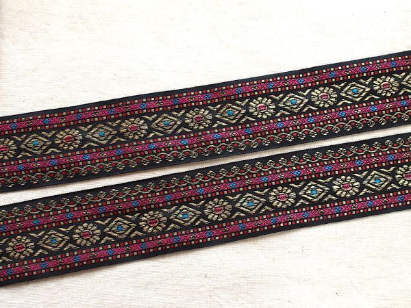 即決 ! 0.5mより インド刺繍リボン チロリアンテープ 黒☆民族衣装☆手芸 リボン