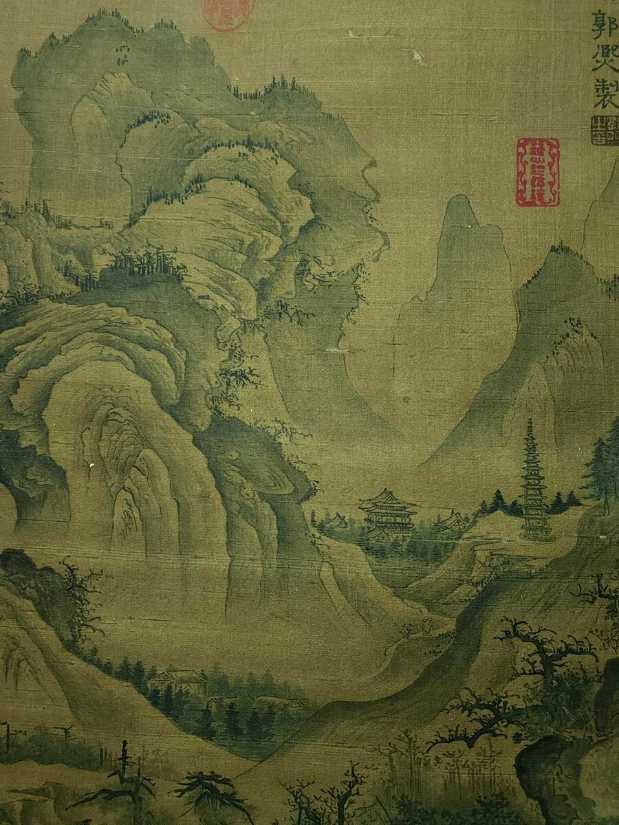 中国書画「宋 郭熙 山水図」肉筆絹本 掛け軸 墨寶妙品 書画立軸 巻き物 古美術 旧蔵出
