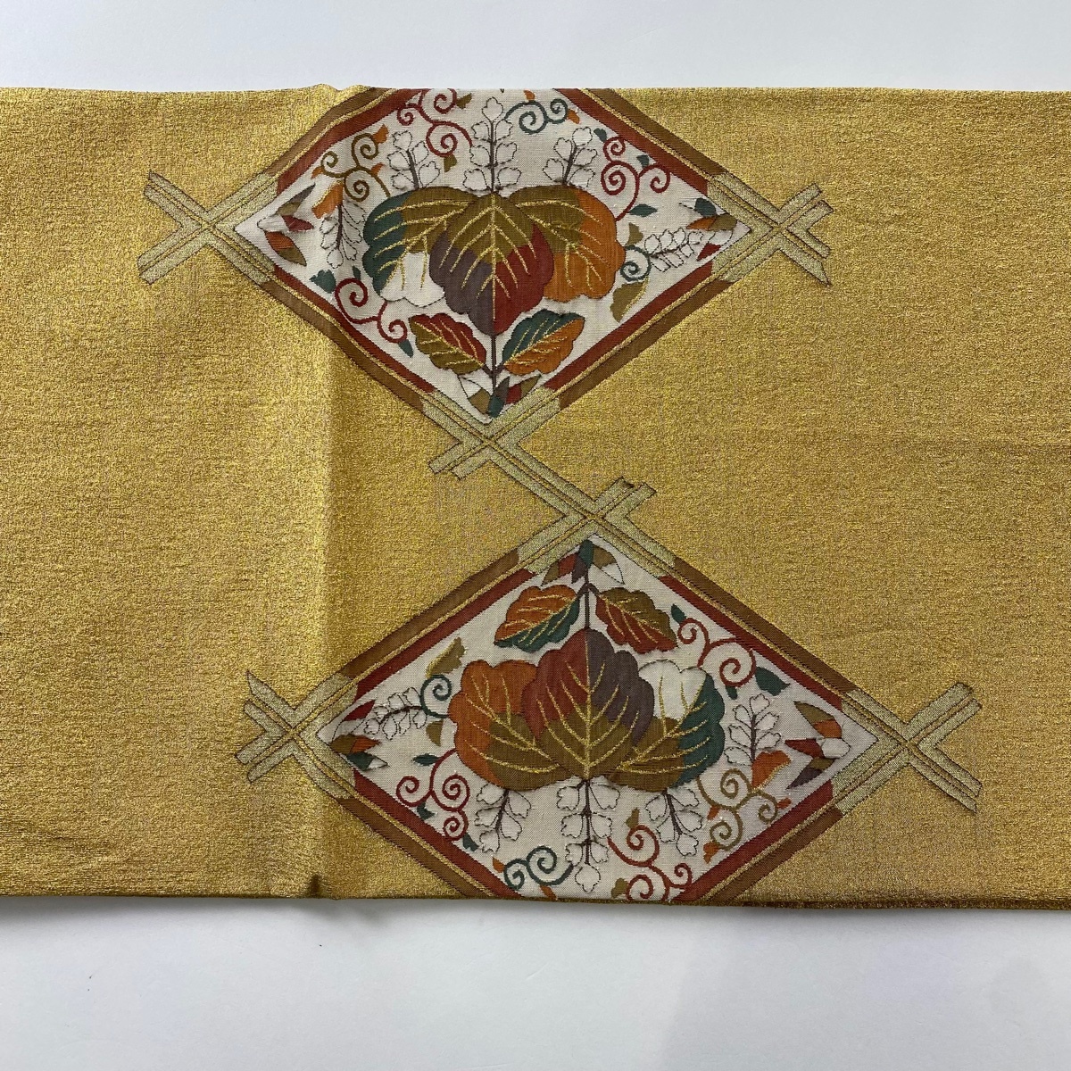 | 袋帯 美品 名品 向かい鶴 桐 金糸 金色 お太鼓柄 正絹 【中古】 |