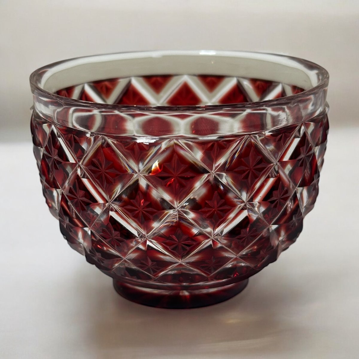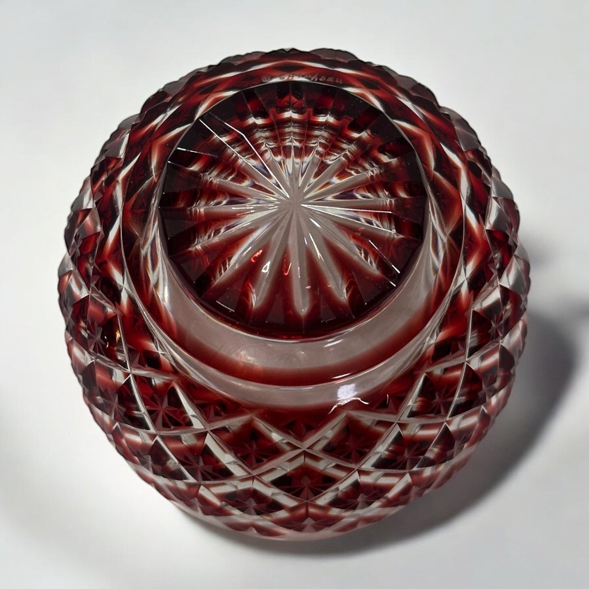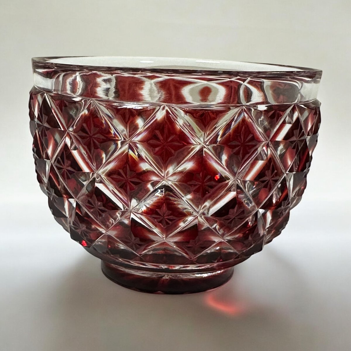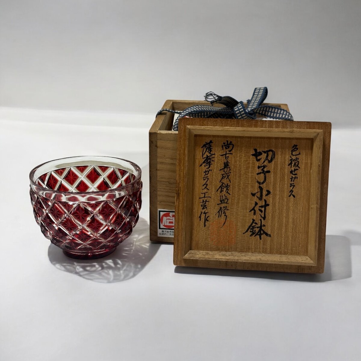 B277 復元 島津 薩摩切子 小付鉢 尚古集成館監修 薩摩ガラス工芸作 共箱 色被せガラス 赤 | |||
