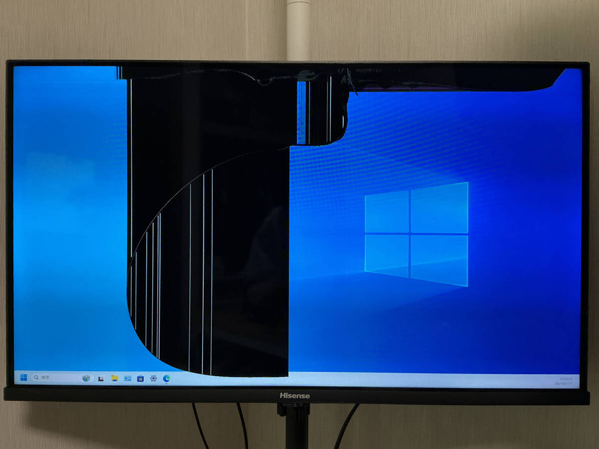 2025年7月に不慮の事故により液晶パネルが割れてしまい、写真1枚目のように画面に大きな破損があります。