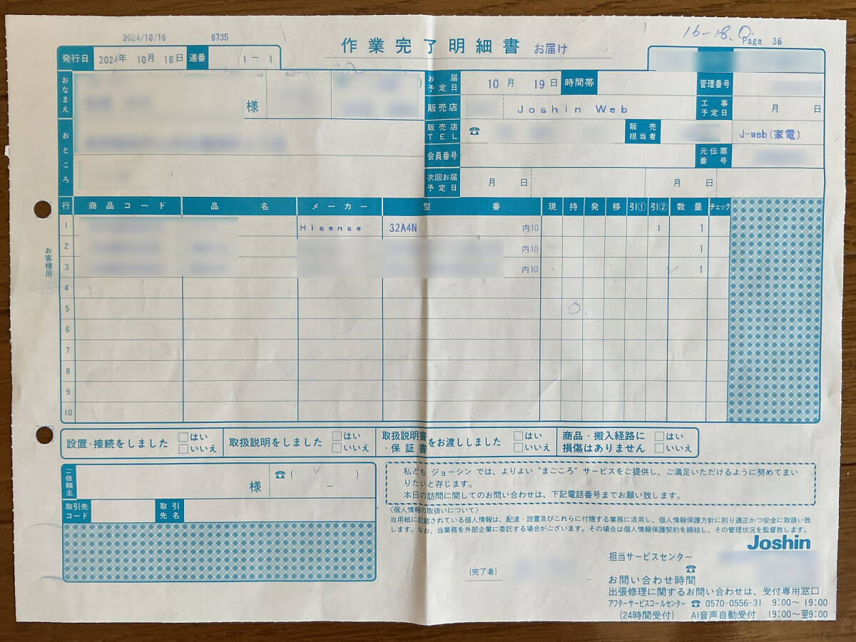 2024年10月19日に家電量販店(ジョーシン)にて新品購入しました。