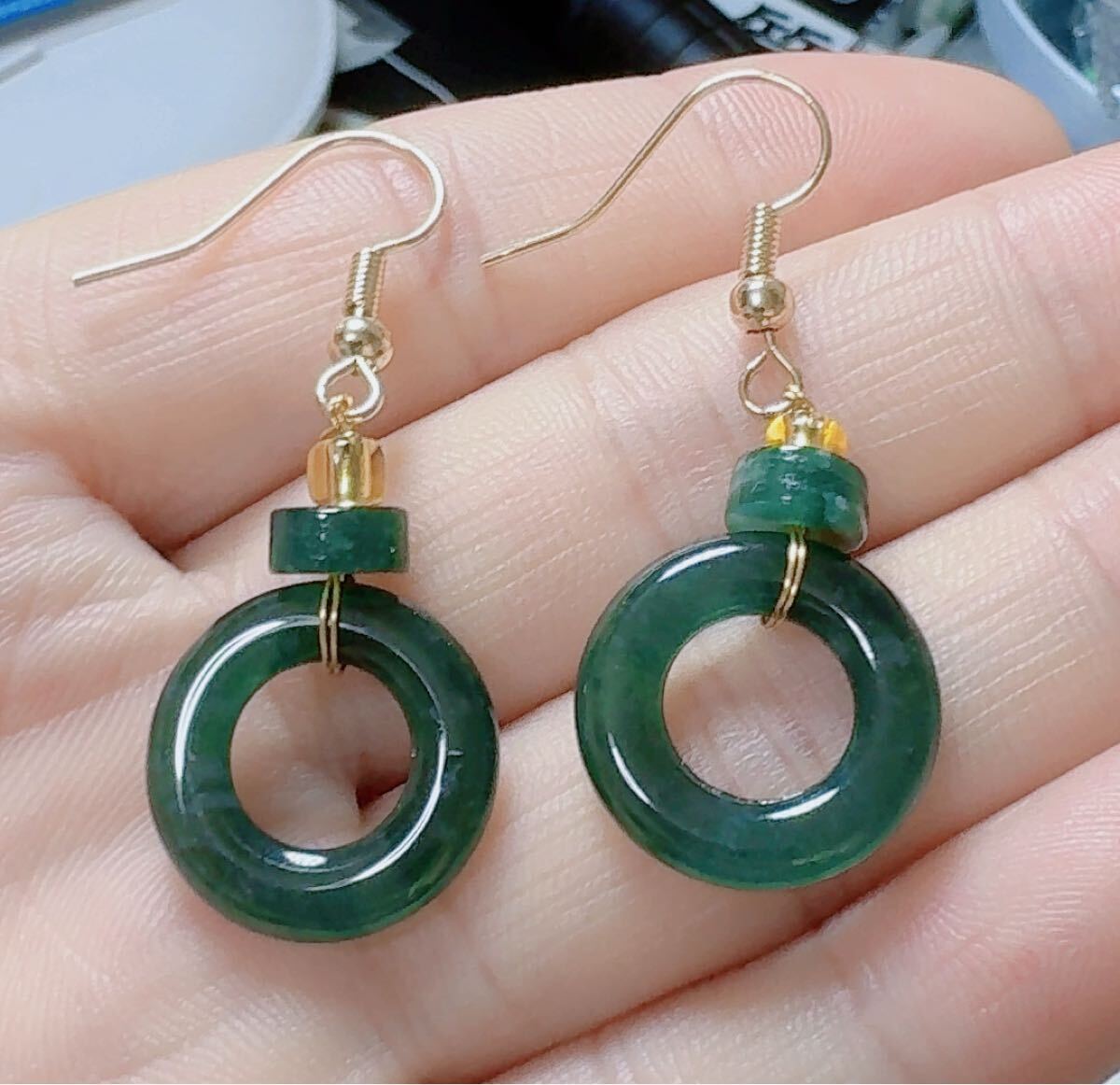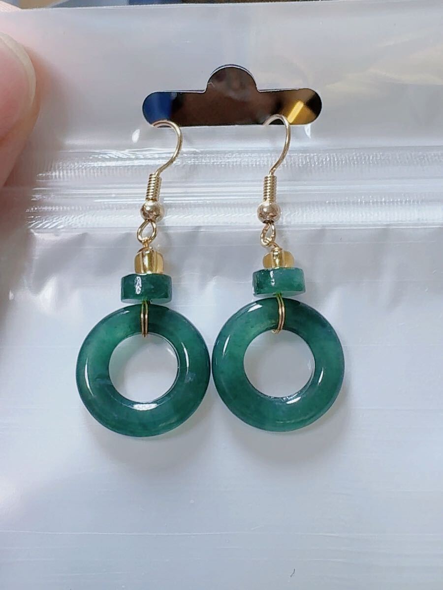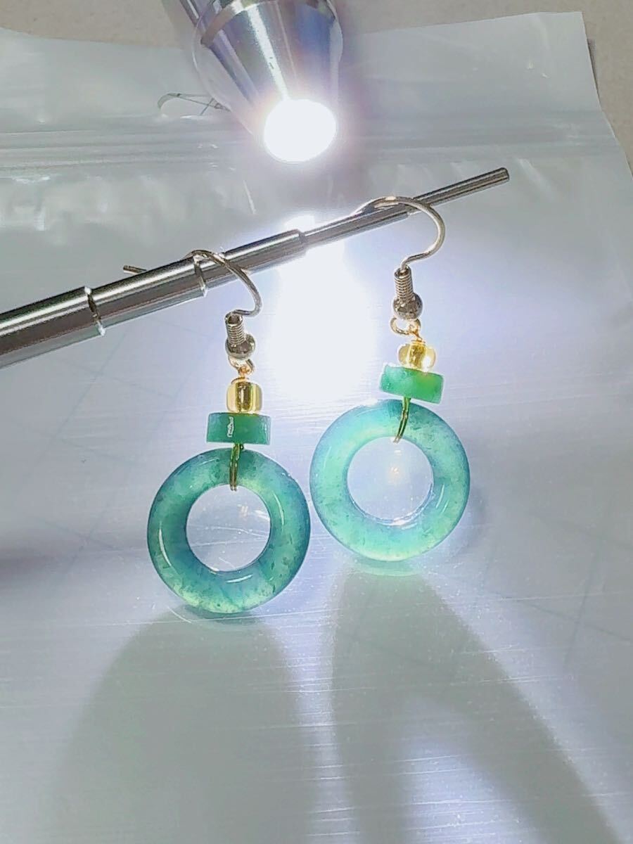 R2M-0227天然本翡翠《本物保証》 藍水翡翠ピアス 一点物 魔除け 昇進 成功 風水 金運 財運 幸運 幸福 縁起物 パワーストーン