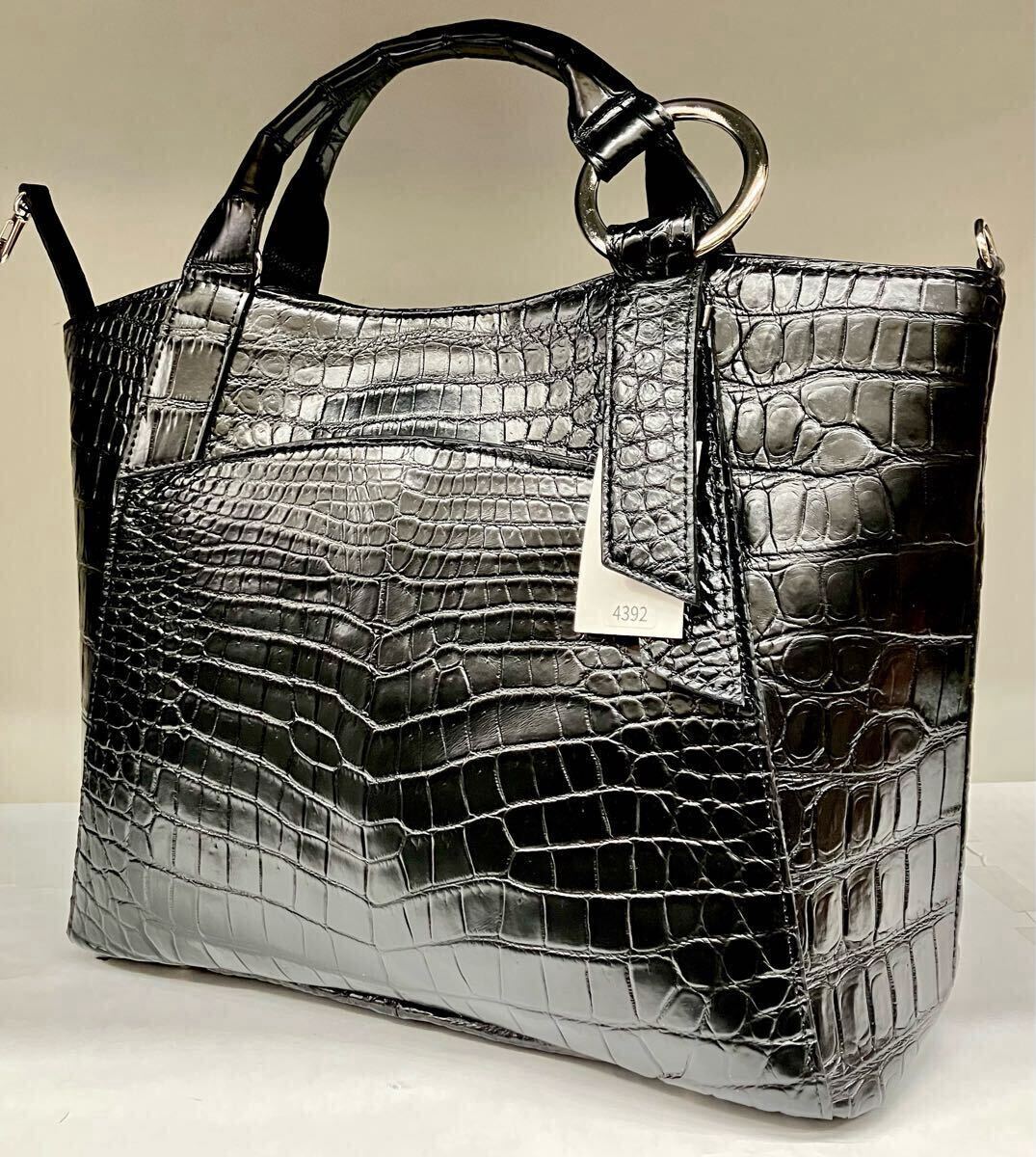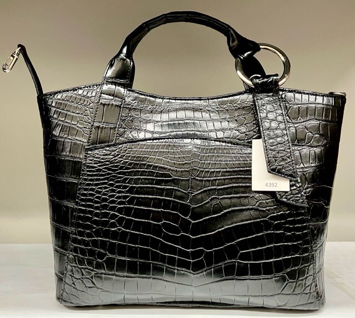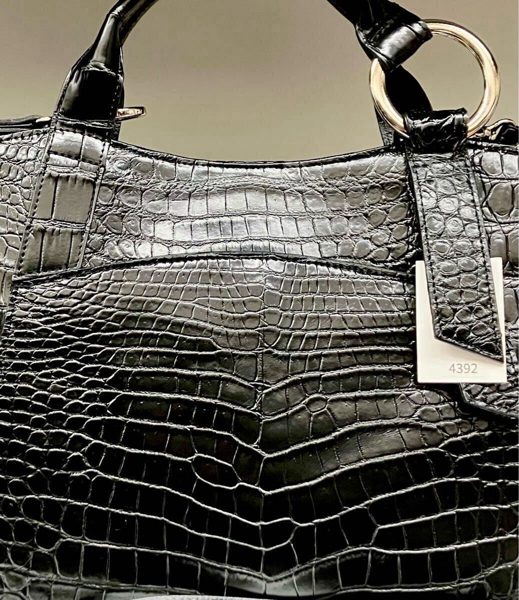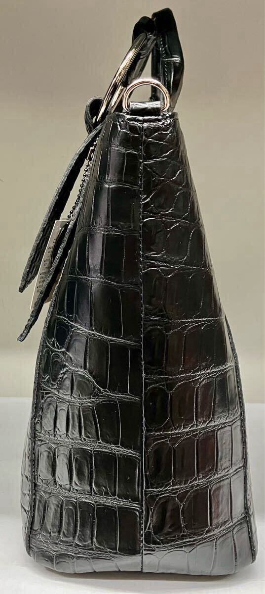 国産、日本製のクロコダイルワニ革使いの手提げ&ショルダートートバックです。外側表面と裏面にマグネット式のポケットが付いております。