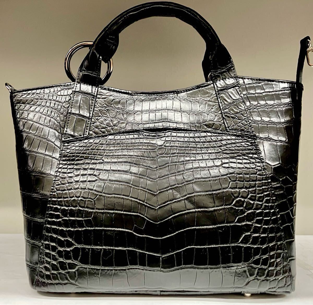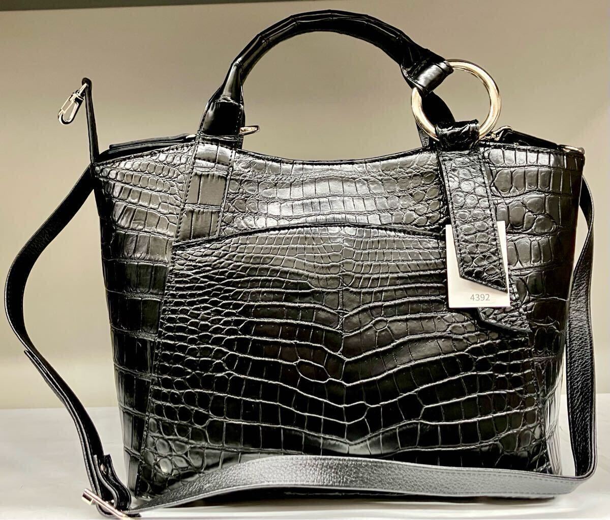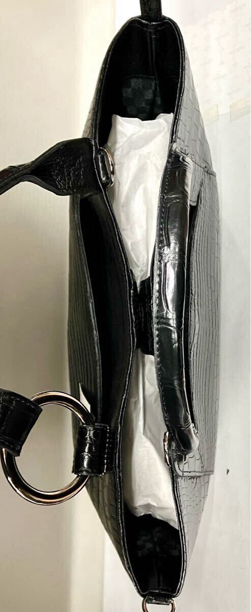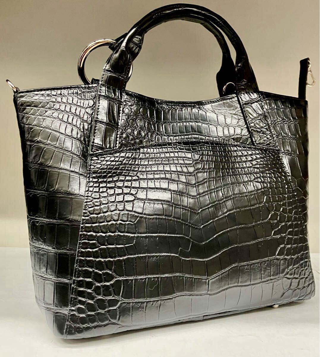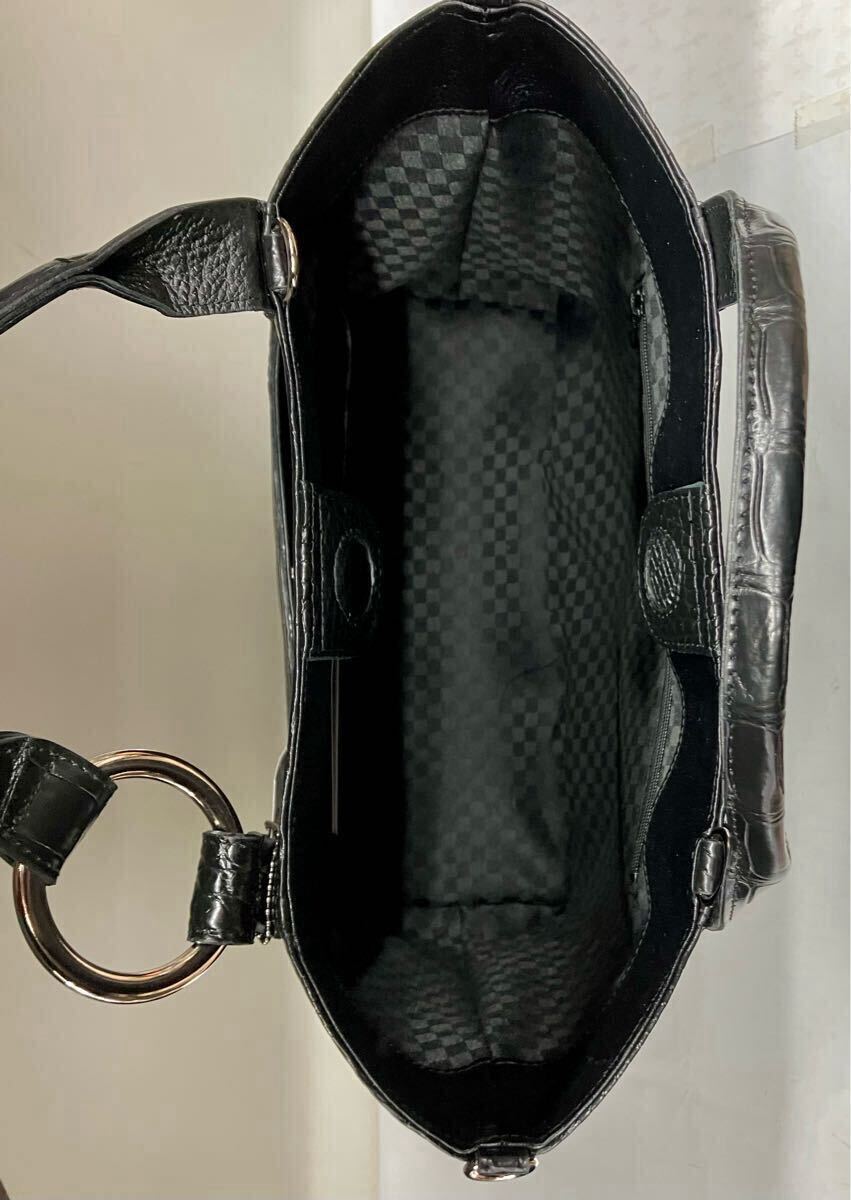 国産、日本製のクロコダイルワニ革使いの手提げ&ショルダートートバックです。外側表面と裏面にマグネット式のポケットが付いております。