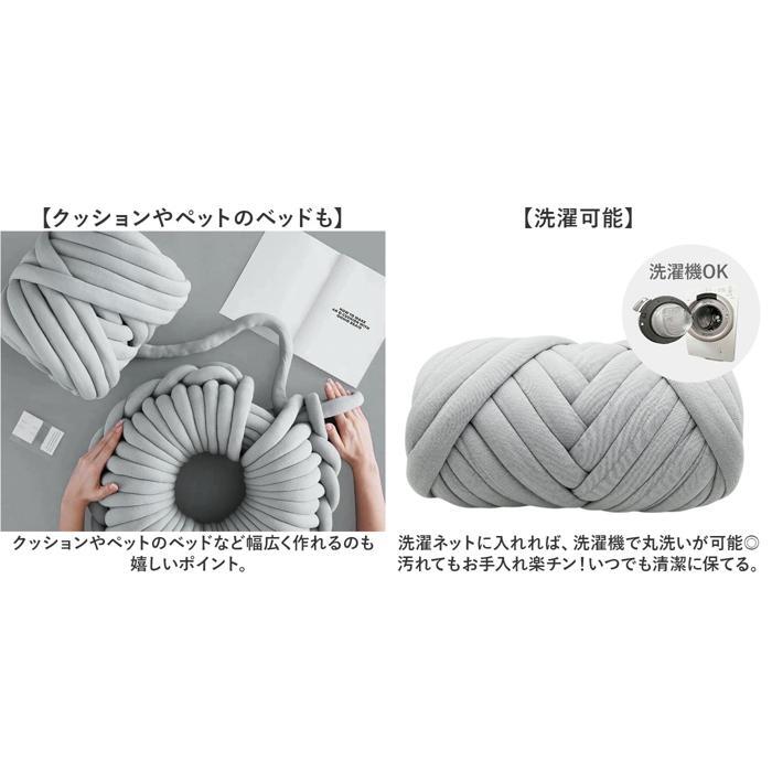 | 商品説明 | ・・【洗える専用毛糸】 ・チャンキーニットにぴったり♪洗える専用毛糸が新発売。(1kg) ・【チャンキーニットとは】 ・極太の毛糸を道具いらずで編み込むことができ誰でも手軽にハンドメイドが楽しめる◎ ・【オールシーズン対応】 ・サラッとした手触りのポリエステル生地でオールシーズン使える。 ・【中綿入りでふっくらとした素材】 ・ふっくらと中綿が入った柔らかい生地感。カバンはもちろんシングル毛布の作成もオススメ♪ ・【クッションやペットのベッドも】 ・クッションやペットのベッドなど幅広く作れるのも嬉しいポイント。 ・【洗濯可能】 ・洗濯ネットに入れれば、洗濯機で丸洗いが可能◎汚れてもお手入れ楽チン!いつでも清潔に保てる。 ・【繰り返し使える】 ・新しいものを作りたい時も解けばまた使える☆エコで経済的なのもGOOD。 |