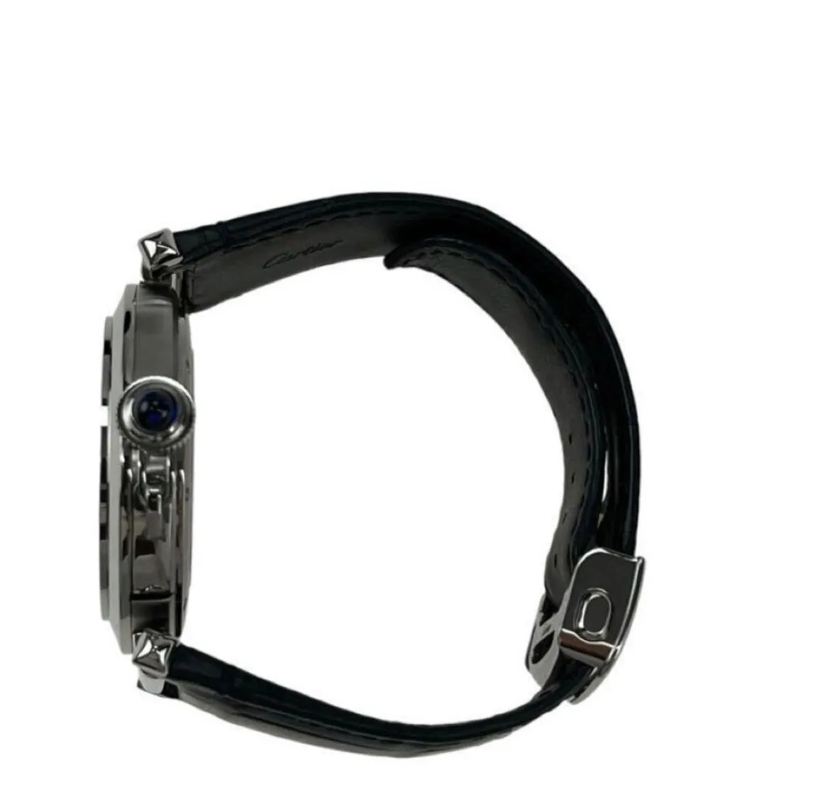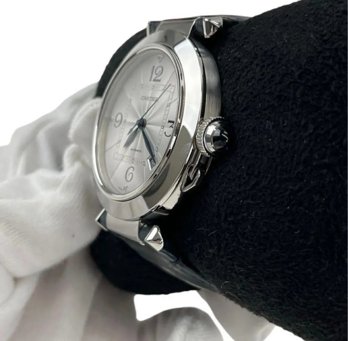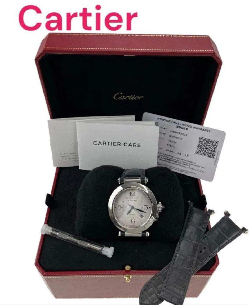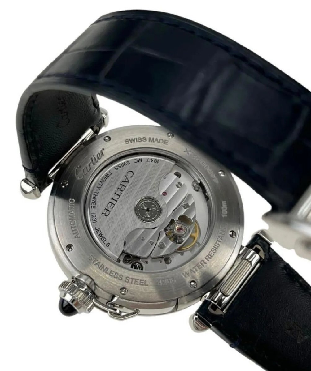 美品 カルティエ Cartier パシャ メンズ 時計 M4I792 腕時計 稼働品 ブラック レザーベルト シルバー WSPA0010 保証書 箱 5D206