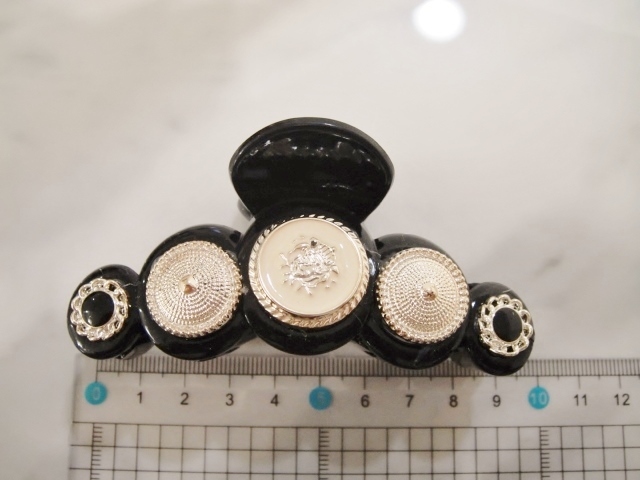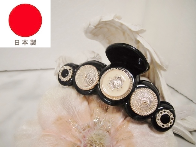 ♪新品 日本製 Made in Japan バンスクリップ『高品質/アセチ/ロングサイズ/5連サークル/GOLDメタル/紋様/ブラック/黒』♪