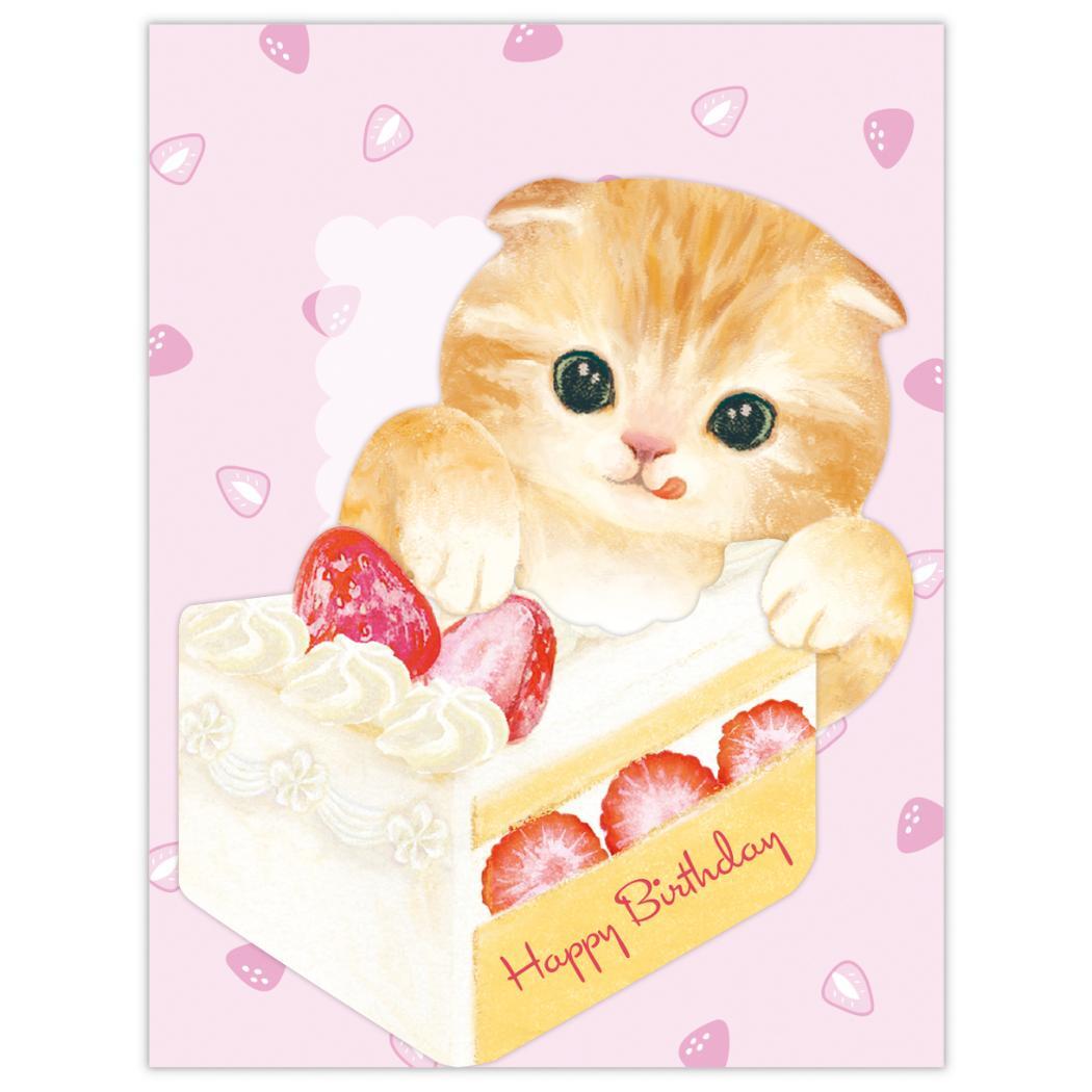 贈ってももらっても楽しいメッセージカード 猫xショートケーキのラブリーなミニカード贈ってももらっても楽しいグリーティングカードこちらはとってもおしゃれなダイカットの[ミニグリーティングカード]大切な気持ちを可愛いデザインが届けてくれますほかにもいろいろあるのでお気に入りをみつけてくださいカードサイズ:約75x92mm封筒サイズ:約80x105mm