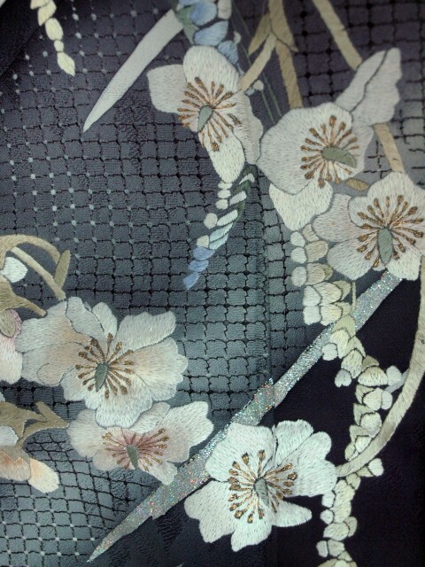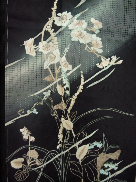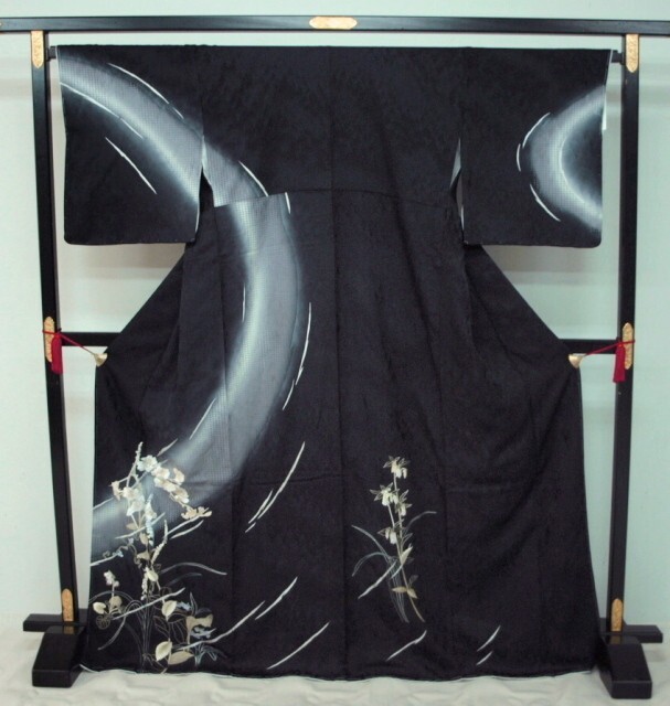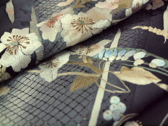 大幅値下げ黒の紋意匠に スワトウ刺繍に白い胡蝶蘭の刺繍をあしらった豪華で上品な訪問着です。お祝い行事やパーティ・結婚式にお使いいただけます。お仕立て上がりですのですぐにお召しいただけます。地模様がさらに光沢をかけてとても美しく妖艶でお手に取ってご覧頂くとスワトー刺繍と花の刺繍の豪華さに目を見張る美しさです<素材>表地・裏地:絹100%<サイズ>身丈163cm 袖丈49cm 裄68cm 前幅24cm 後幅30cm<発送>100cm以内で三つ折りたとう紙をお付けして納品致します<発送・お問い合わせ>土曜・日曜・祝日を除く10時~17時*接写の加減やパソコンの違いで多少実物と色が違う場合がございます*ヤフーショッピング きもの遊着苑に同時出品しているためまれに先に売り切れることがありますその際はご連絡させていただきますのでご了承のほど宜しくお願いします。先に売り切れてしまうことがありますのでご入金は在庫確認メールが届いてからでお願いします。*実際にご覧になりたい方は御連絡の上御来店ください。TEL03-3663-7071(杉山(株) 着物遊着苑)