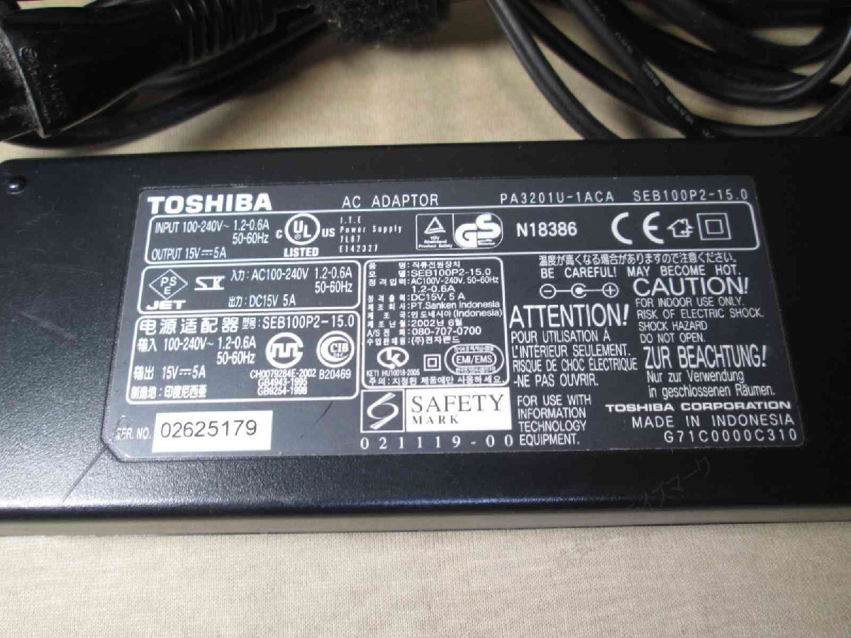 | 商品名 | ACアダプター 東芝 PA3201U-1ACA 15V 5A |
