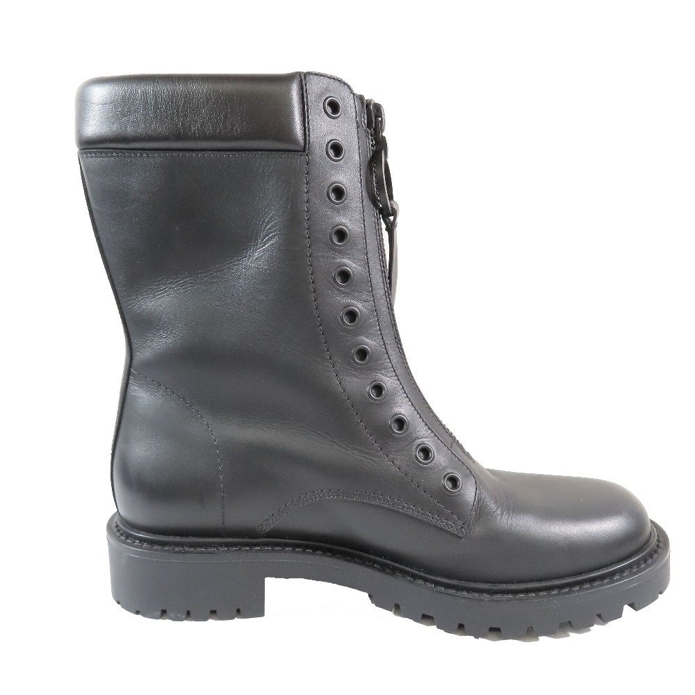 未使用 Christian Dior クリスチャンディオール フロントジップ レザーブーツ ショート ロゴリング 靴 シューズ ブラック 39/26cm