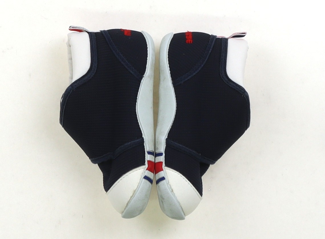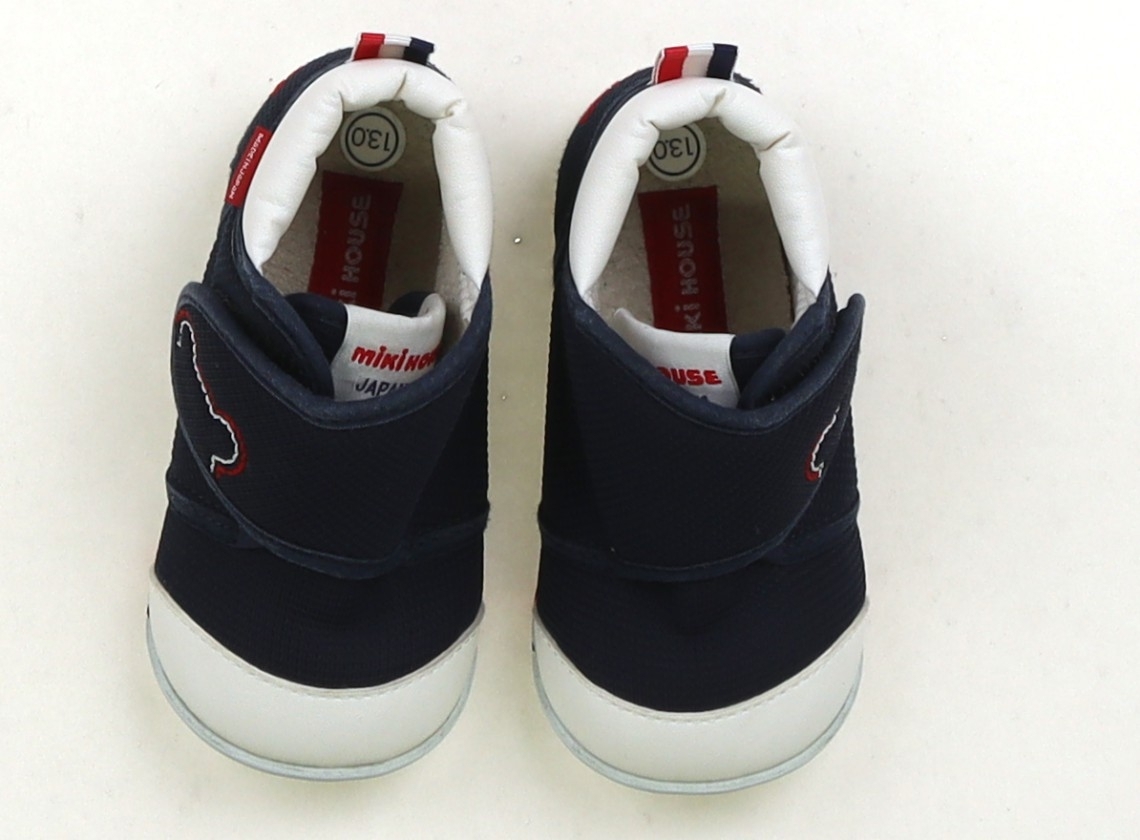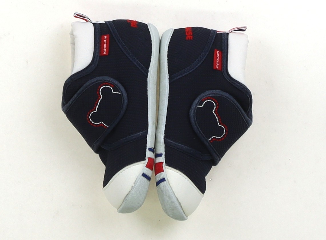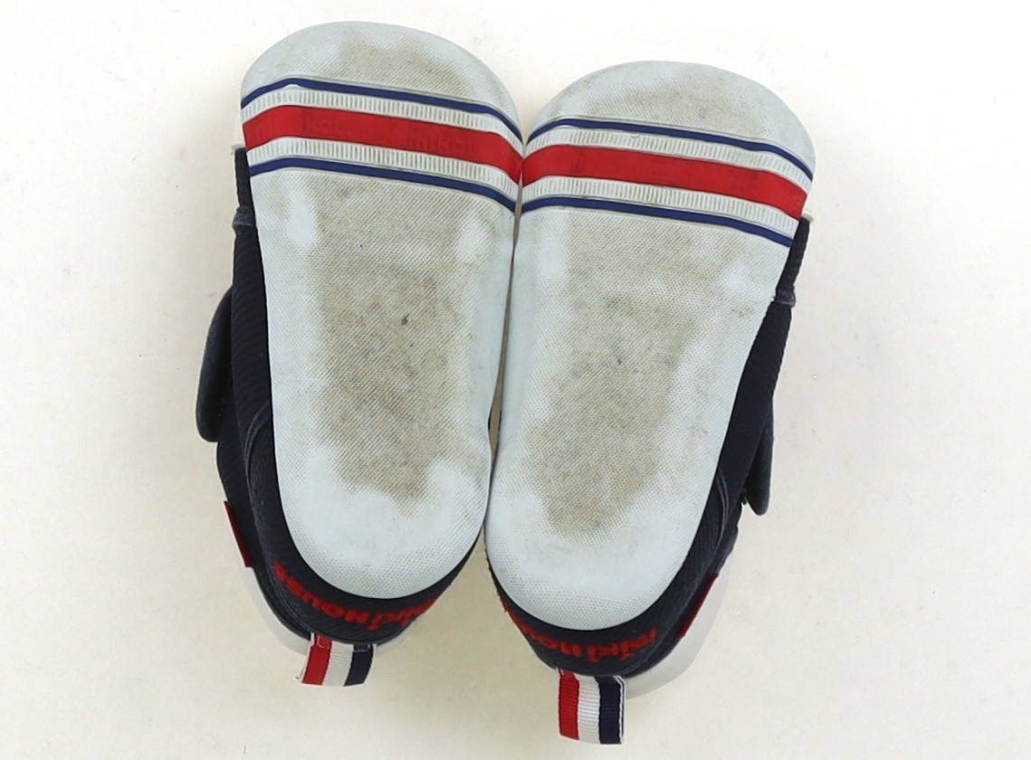 13cm表記。マジックテープ着脱。ソールにすり減り、パイピング部分に色落ち、かかとに擦り切れ等が見られますがまだまだお使いいただけそうです。
