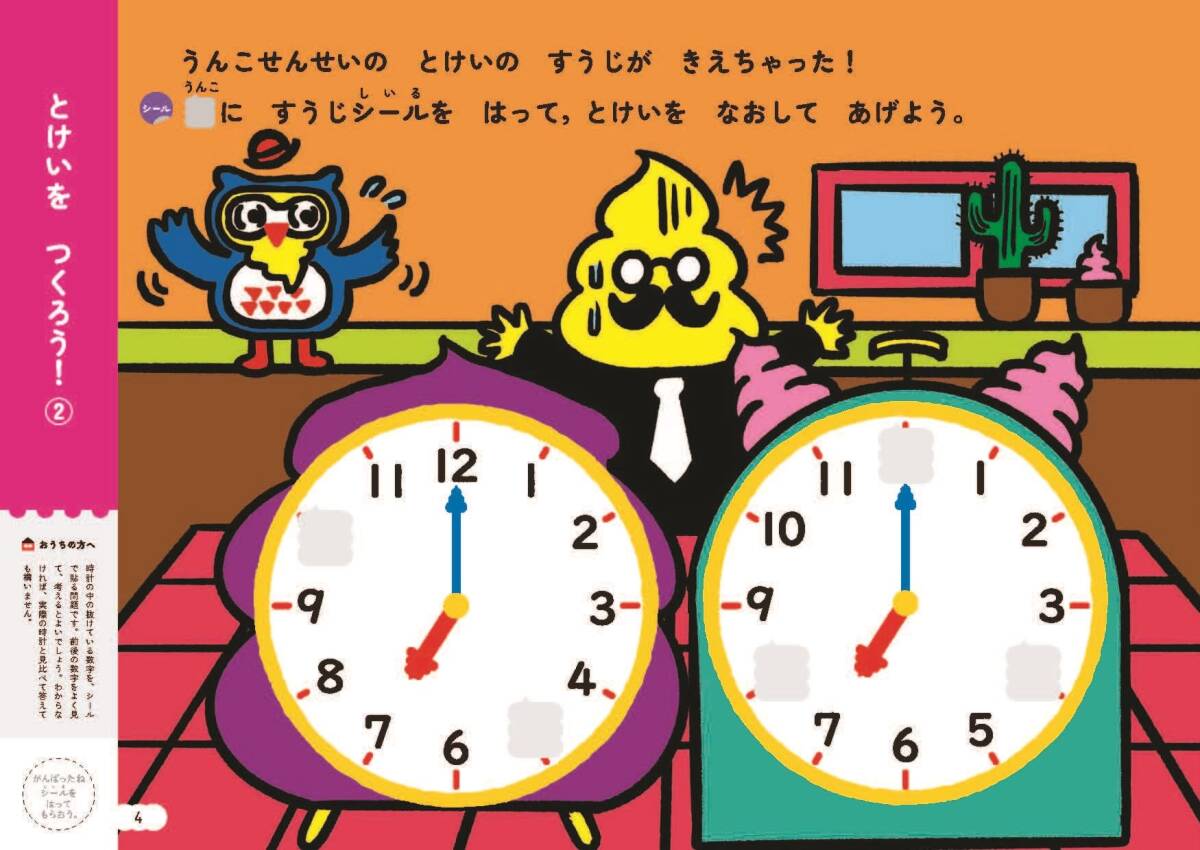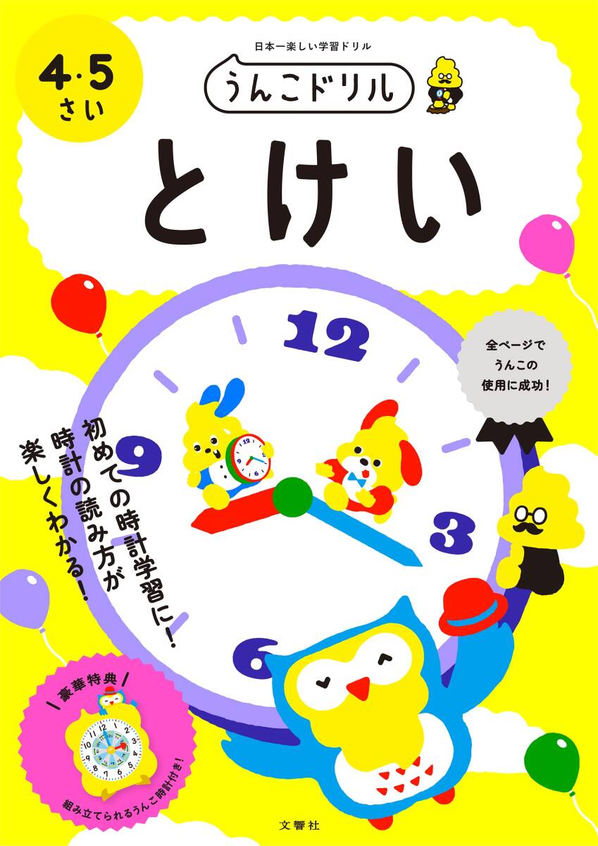 ★☆★シリーズ累計発行部数 1000万部突破! ★☆★ うんこドリルシリーズの中でも大人気の「とけい」ドリル第3弾! 初めて「とけい」に触れる子どもたちにぴったりな「とけい」ドリルが新登場! 時計の仕組みから、10分刻みの時計の読み方までを学びます。 子どもたちが苦手意識をもちやすい時計学習を、うんこの力で楽しく解決! 楽しみながら自然と時計が得意になれるドリルです。 1全問が楽しいうんこ問題! 全ページうんこを使った問題なので、子どもの興味・関心をひきつけ、主体性のある学習が期待できます。 2自然と時刻が読めるようになる! 多くの問題を日常生活での場面の中から出題しているので、実生活と関連付けながら時刻への関心を高め、自然と時刻の読み方が身につきます。 また、丁寧に段階を追って繰り返し学習する構成になっているので、無理なく進めることができます。 3最後まで飽きない仕掛けが満載! 迷路やシールを使った問題、付録の時計などのお楽しみ要素を充実させています。ページごとにバラエティーに富んだイラストで、繰り返し作業で飽きがちな時計問題でも楽しく最後まで取り組むことができます。