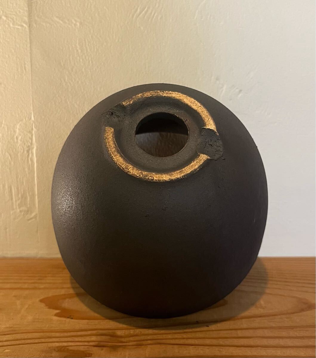 かみ山陶器 丸鉢マット 黒 信楽焼 約Φ12.5cm×H9cm 丸鉢 未使用