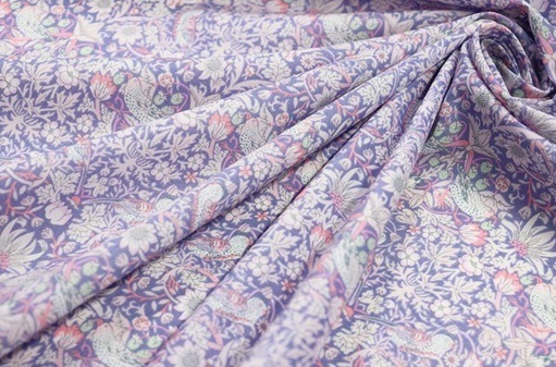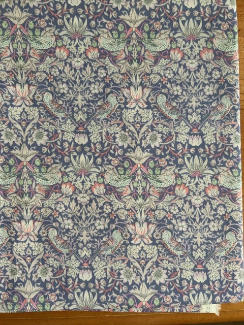 リバティのタナローン生地、Strawberry Thief &ストロベリー・シーフと言う布です。お色はオリエンタルパープル。実際のお色は写真3枚目が1番近いです。素材はコットン100%。サイズは108幅×150センチです。写真1枚目に映っているリバティのカットクロス(50×30センチ)をお付けします。どうぞよろしくお願いします。