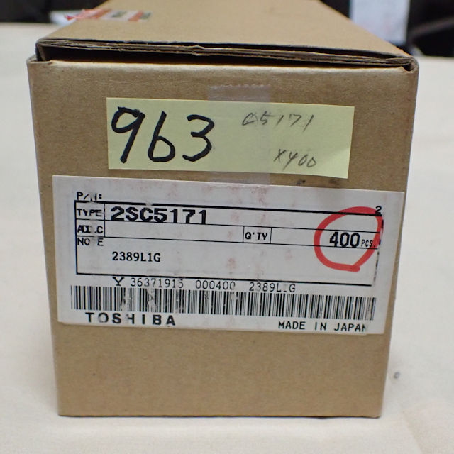 東芝が誇る2SC5171で、メーカ製品も含めてよく使用された名石です。オーディオ全盛時代の名石と言ってもいいでしょう。