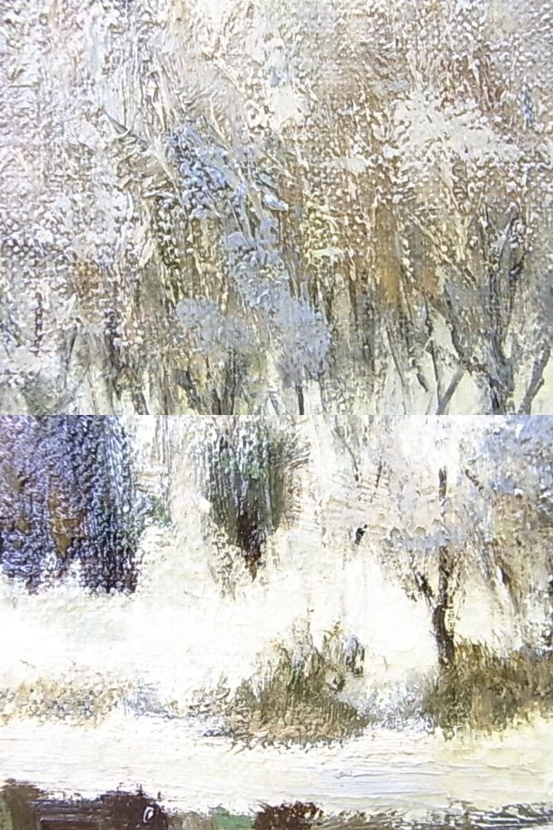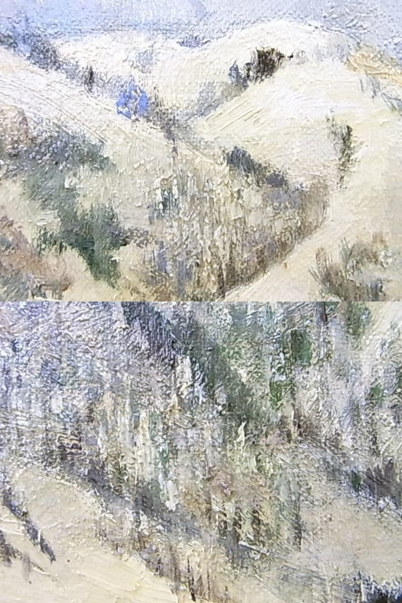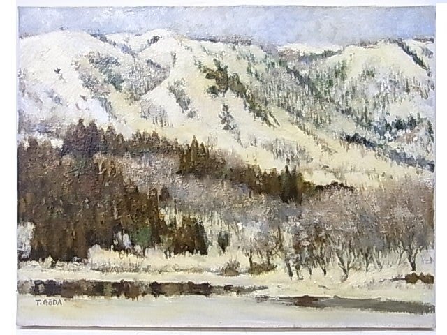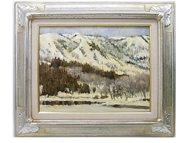 e9773 真作保証 油彩 風景画 合田徳一郎 「雪の恩原」 額縁