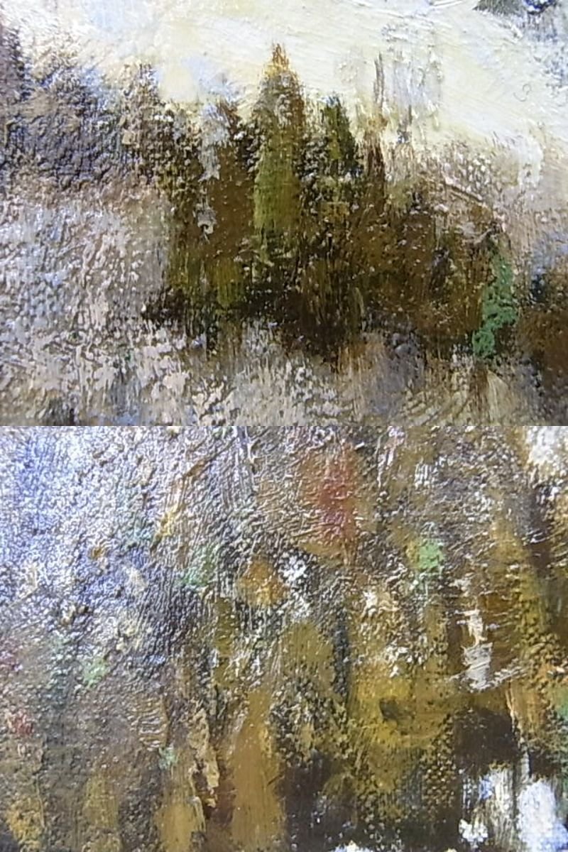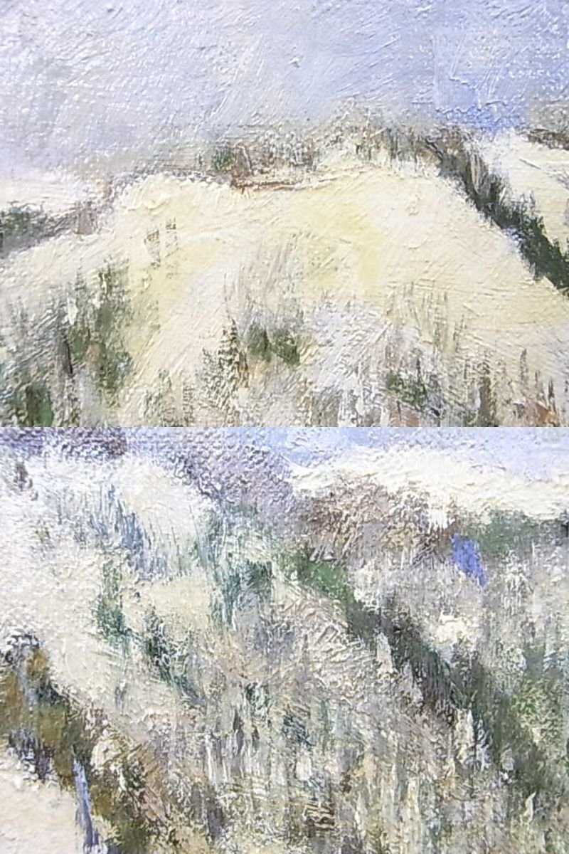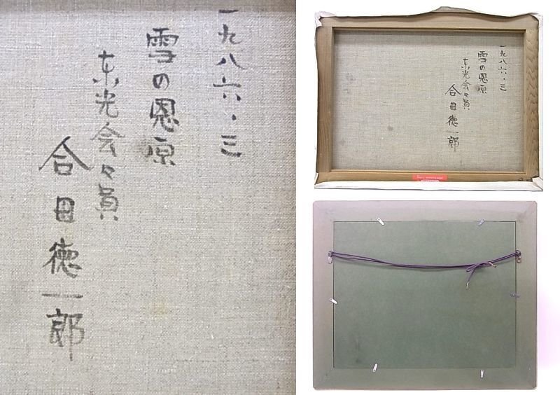 e09773 真作保証 油彩 風景画 合田徳一郎 「雪の恩原」 額縁