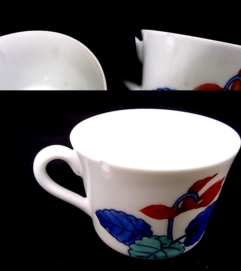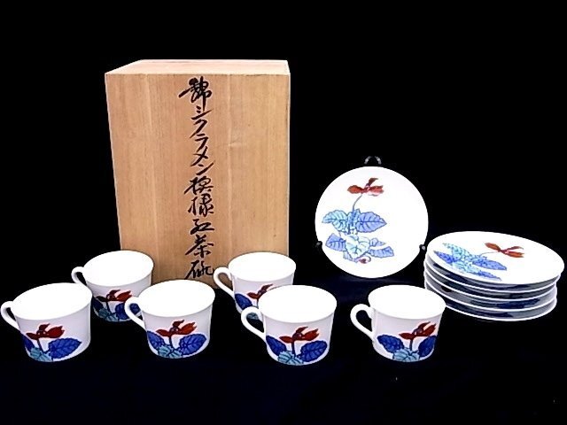 h0802 今泉今右衛門 錦シクラメン模様 紅茶碗 有田焼 カップ&ソーサー カップ6点 ソーサー6点 計12点セット 共箱