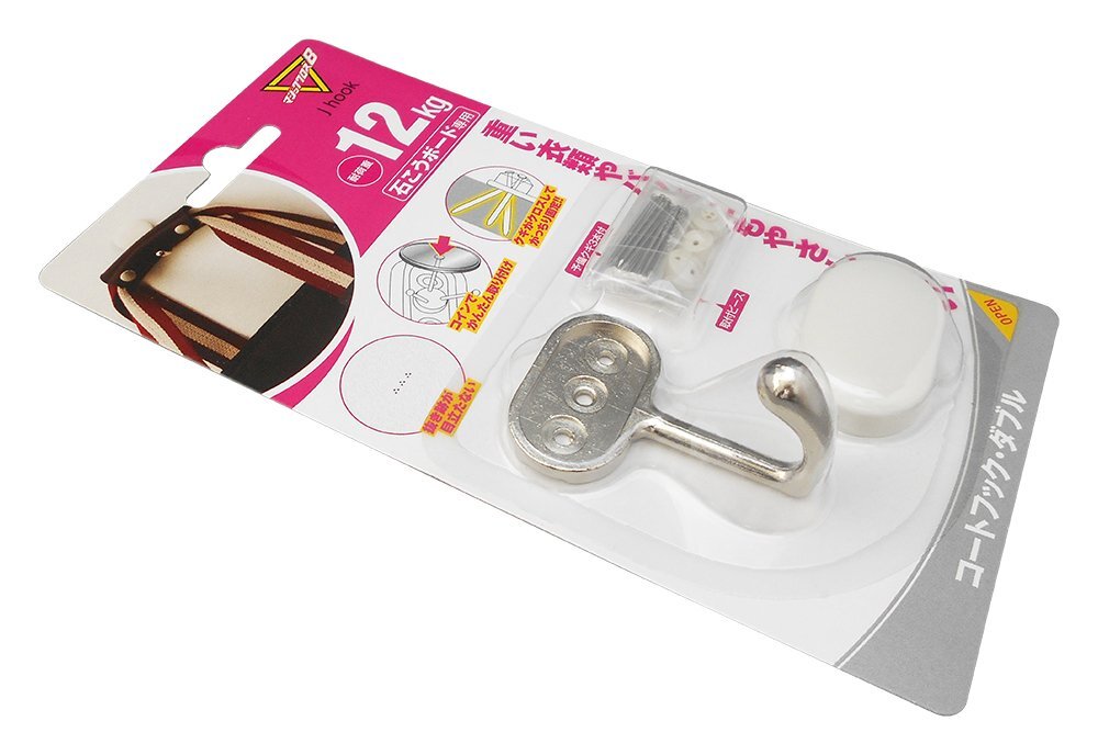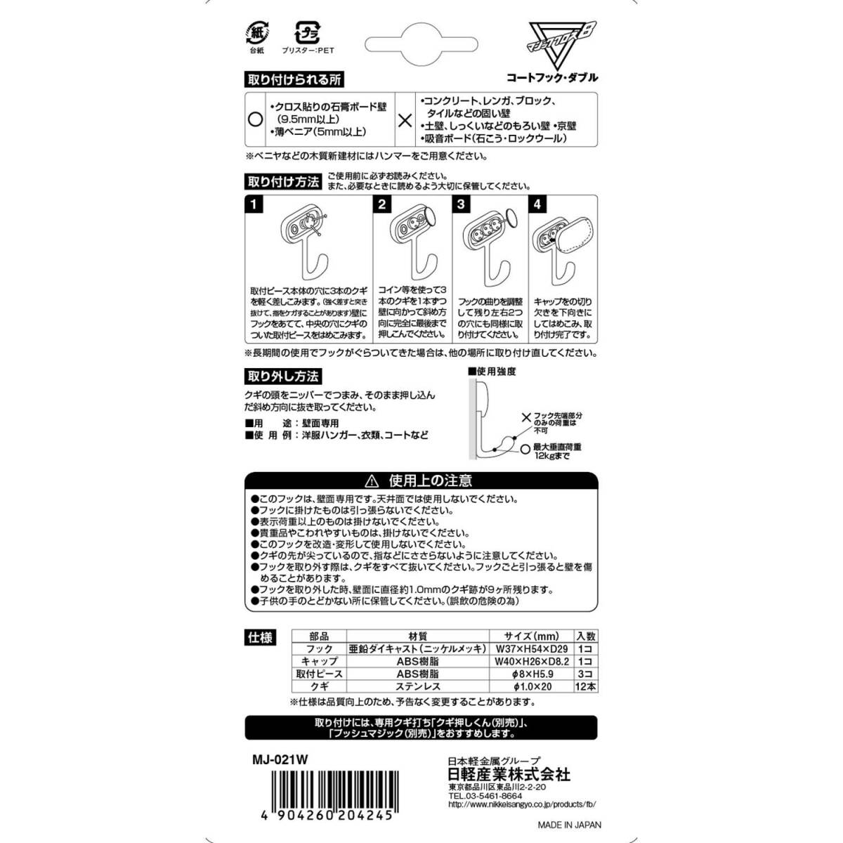 日軽産業 フック マジッククロス8 J hook コートフック・ダブル MJ-021W 奥行2.9×高さ5.4×幅3.7cm キャップ1コ、取付