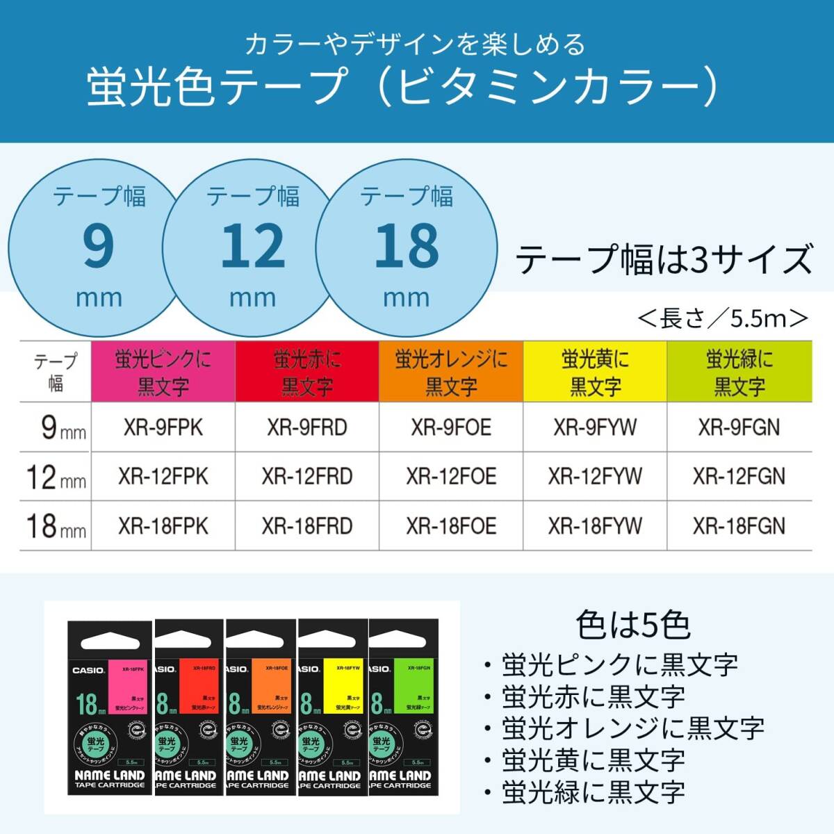 カシオ ラベルライター ネームランド テープ 12mm XR-12FOE 蛍光オレンジ