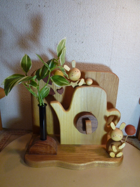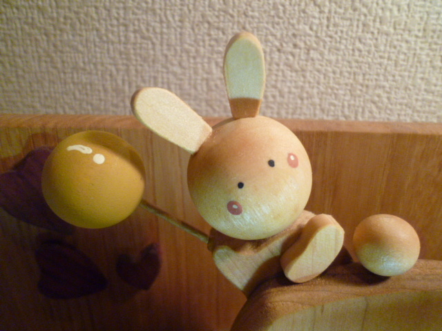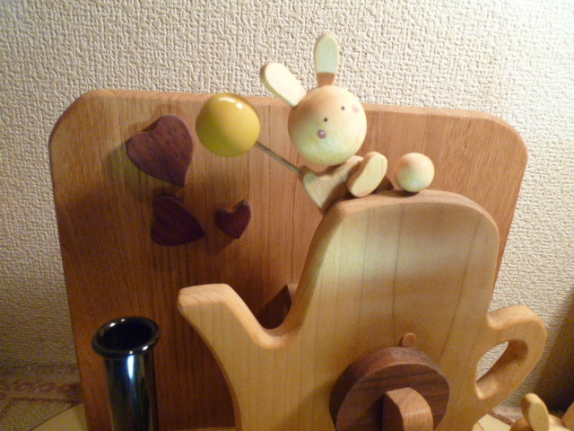 木製オルゴール付き ふーせんを持つウサギのメモ&ペンスタンド 曲:ノクターン 新品・未使用・展示品