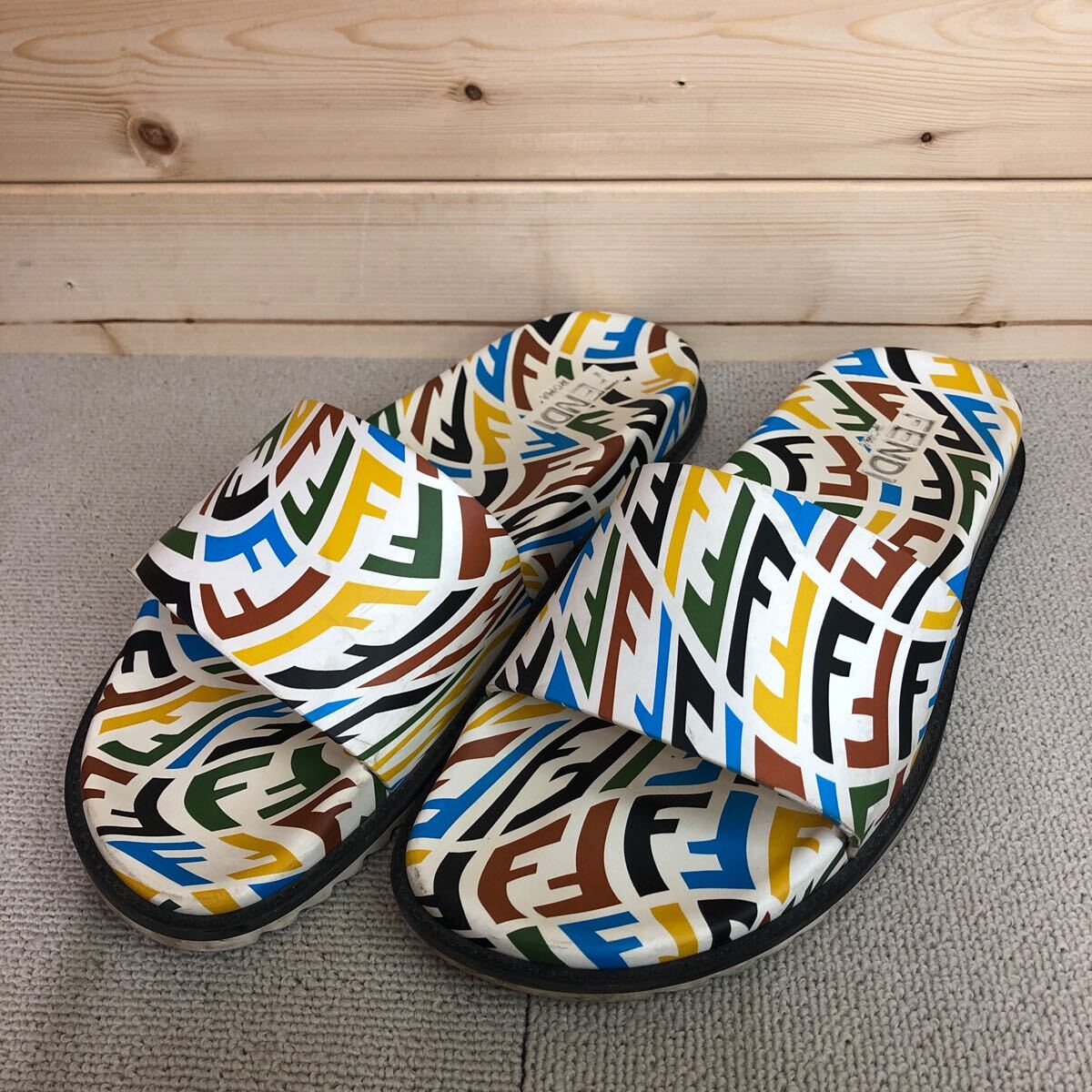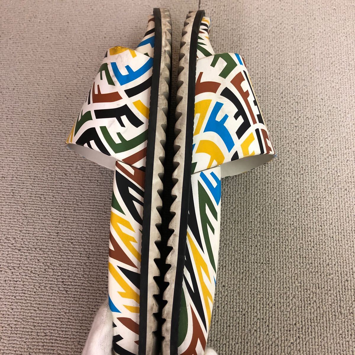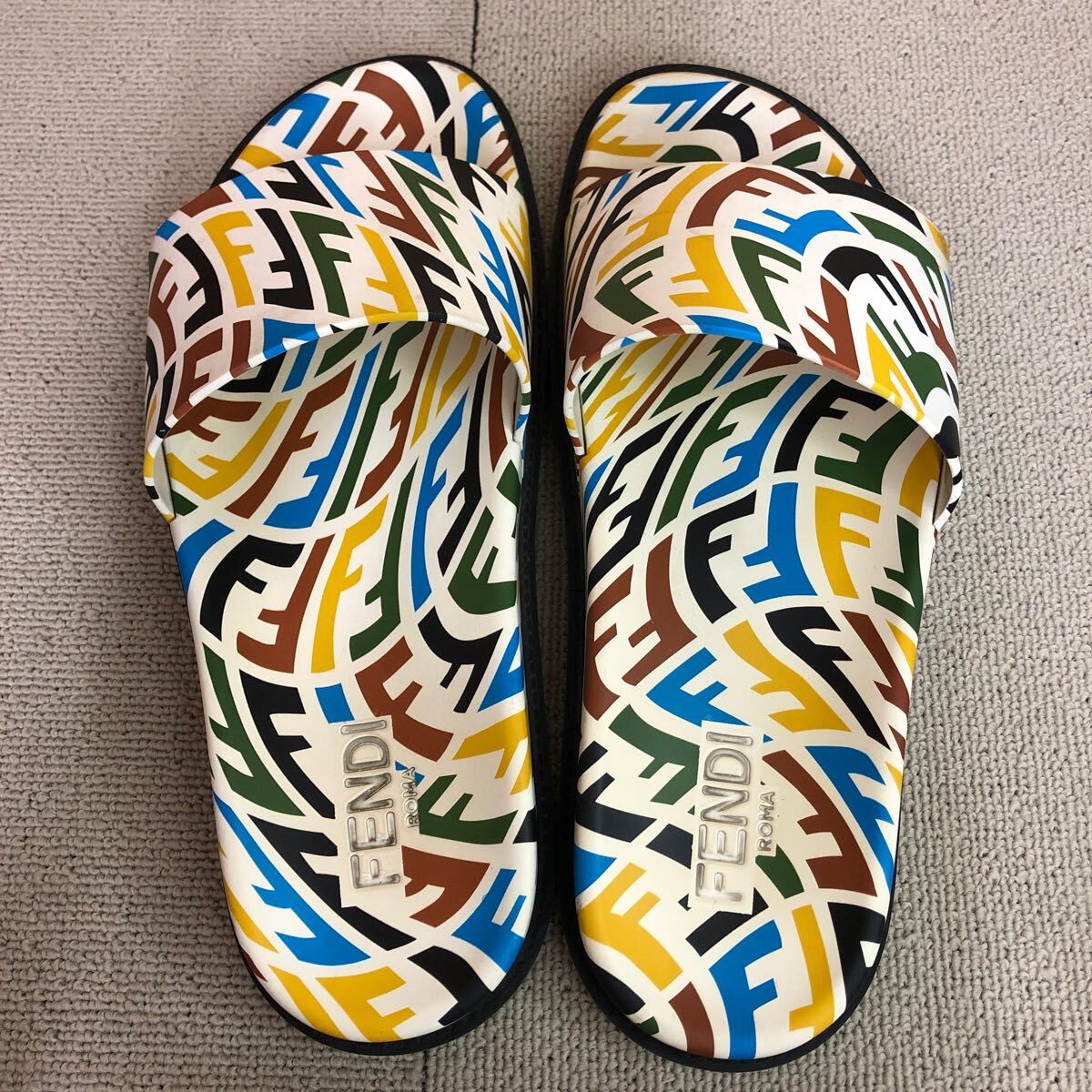 (31)Fendi フェンディ FF Vertigo ラバー スライド サンダル 10 ホワイト 白 マルチカラー 7×1433 FF ヴェティーゴ メンズ