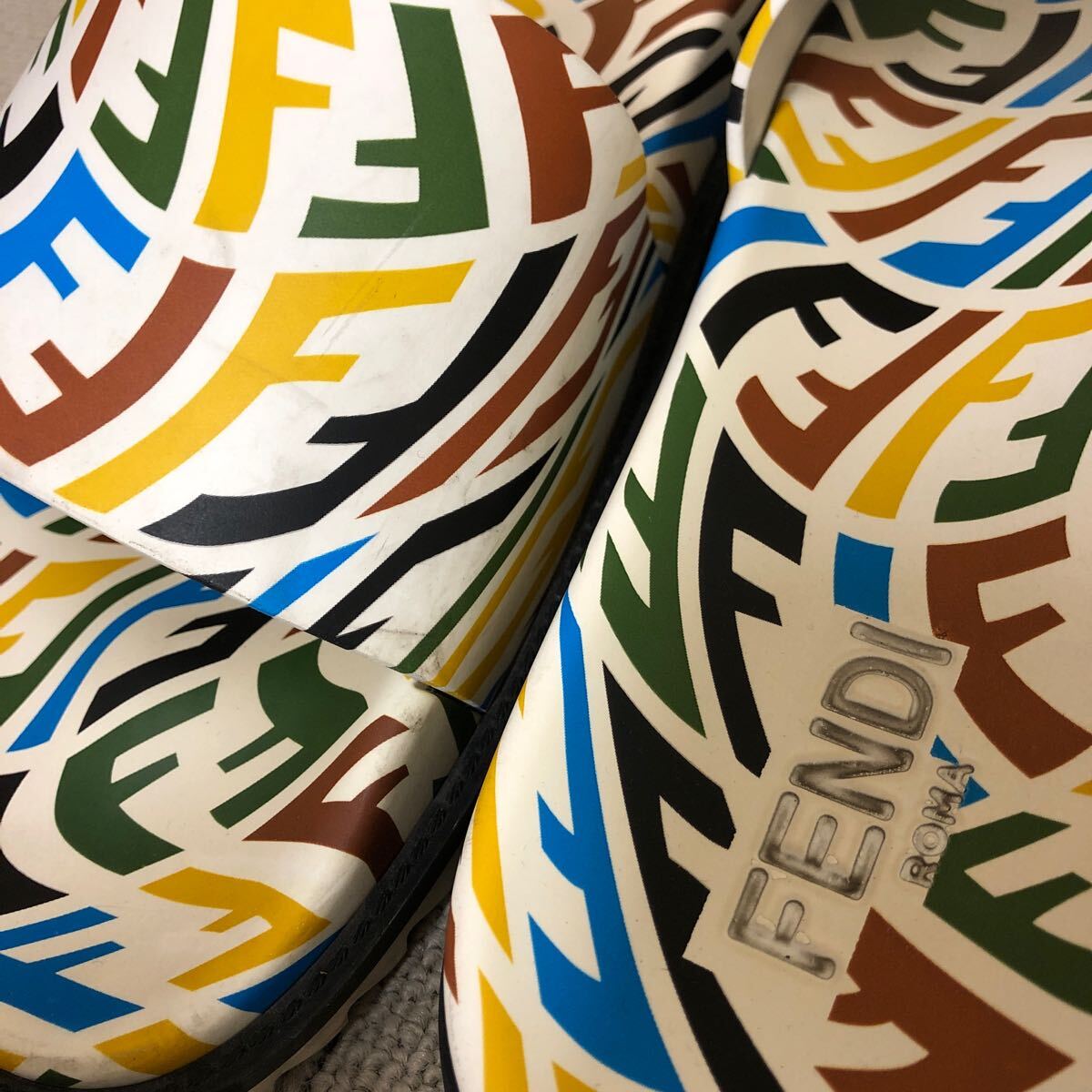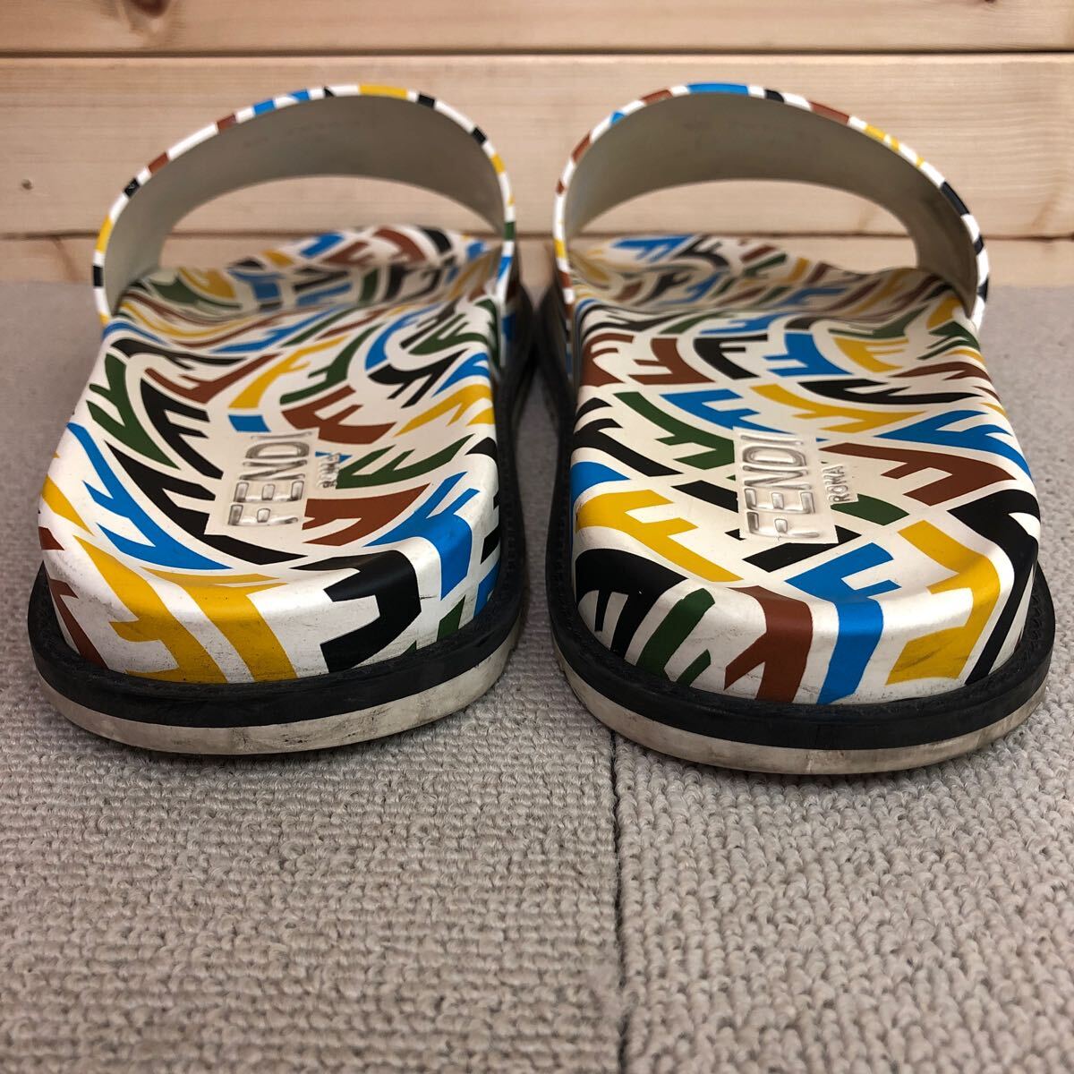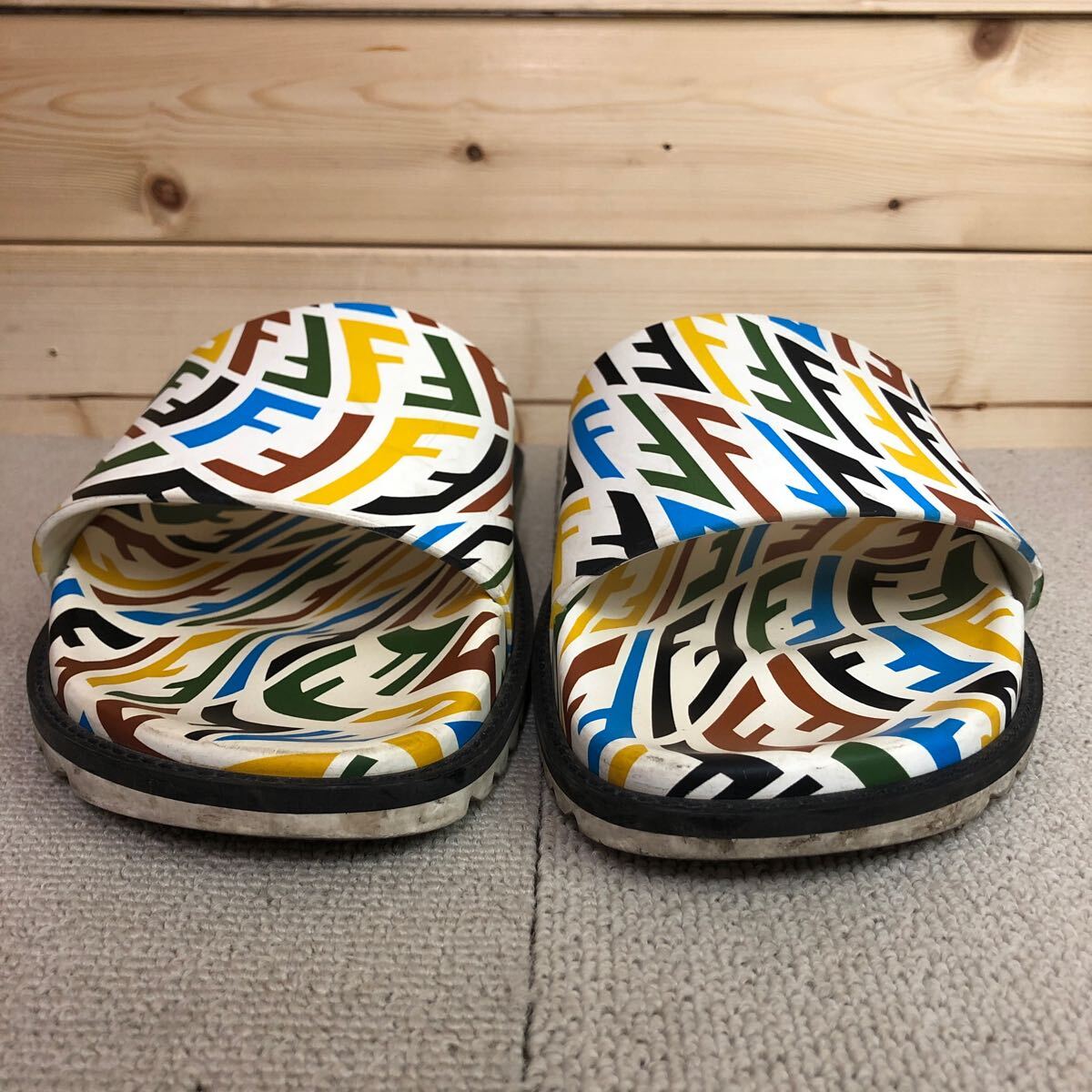 (31)Fendi フェンディ FF Vertigo ラバー スライド サンダル 10 ホワイト 白 マルチカラー 7×1433 FF ヴェティーゴ メンズ