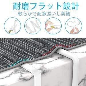 • フラット・スリムケーブル設計: 厚さ2.3mmだけ、狭い場所でも配線易い。特に事務室ユーザは長いフラットケーブル必要かもしれません。壁を伝わって或は敷物下で据付可能です。ケーブル配線クリップ付き、約30個。