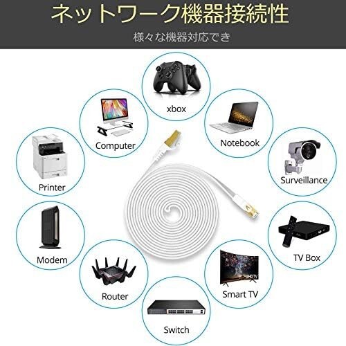 • 適用範囲:両端はRJ45コネクタで特に設定なし、接続は簡単、ルータ、スイッチ、ハブ、ネットワークプリンタ、Xbox、PS2、PS3、PS4、PS5、RJ45プラグを搭載したゲームボックス等に適用します。新型Macbook、 ipadproやandroidにも使用できるので、複数用途がある方には易い持ちにも優れていてお勧めします。既存のCat 5e/Cat 6/Cat 6a LANケーブルなどと互換性があり.