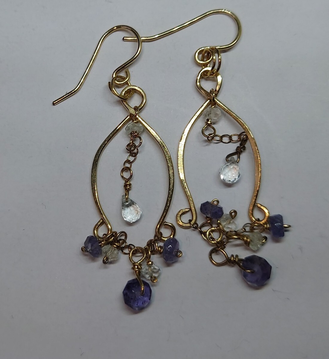 パーツは14Kゴールドフィルド、石はアイオライトにトパーズ?とのことでした。