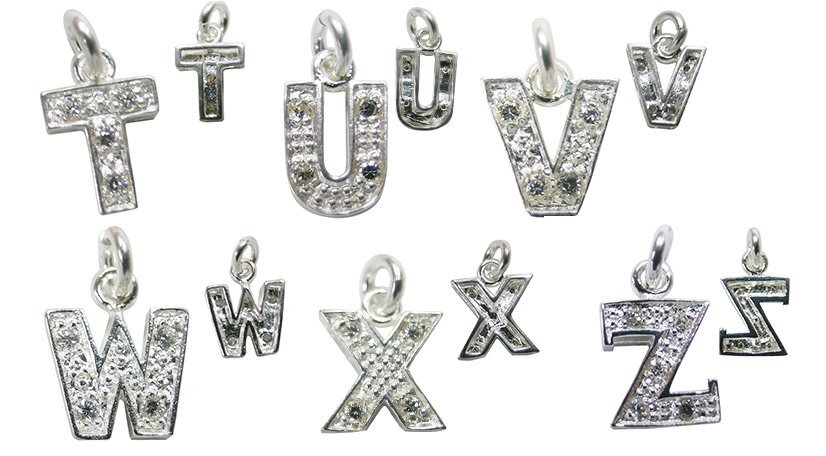 トップ 大きさ(約) 縦13-14mm 横は文字によって異なります。 厚み2mm (丸カン除く)