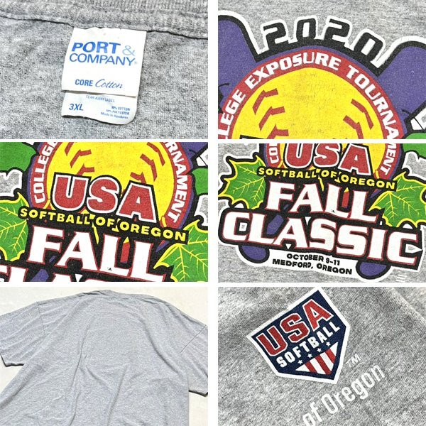 1点物◆PORTビッグサイズUSAソフトボールTシャツ古着メンズXXXLレディースOKアメカジ90sストリートスポーツUSブランド中古SOFTBALL灰349371