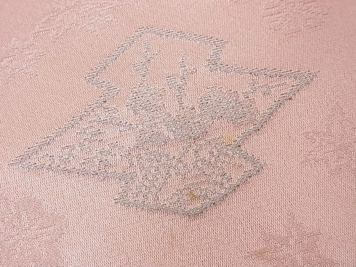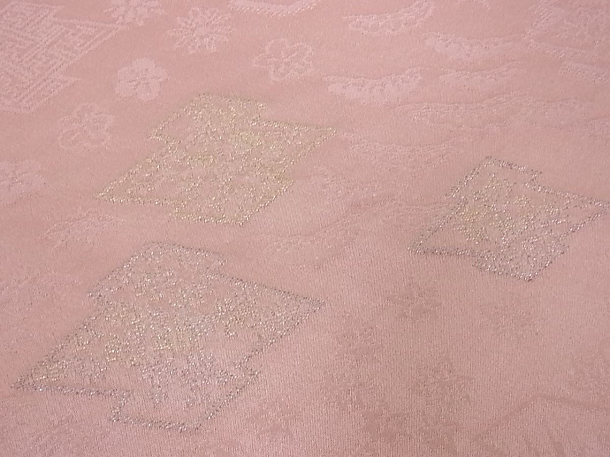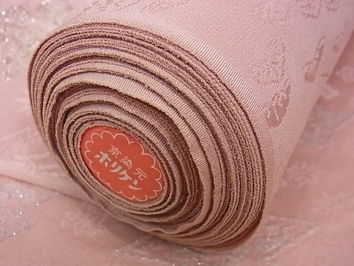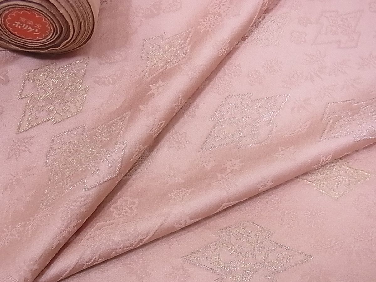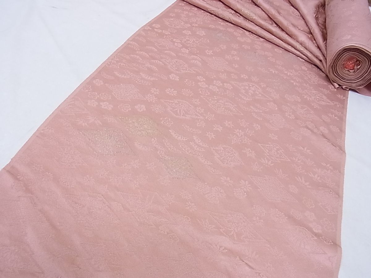 eふれんず◆小紋 反物 着尺 寿宝織 松皮菱花文 退紅色 金銀糸 丹後縮緬 正絹 未使用品 未仕立て◆bm1366
