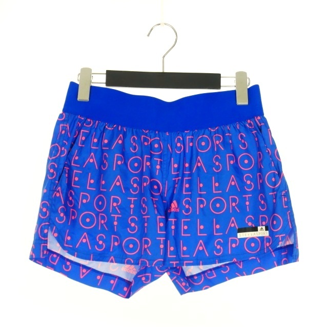 アディダス バイ ステラマッカートニー adidas by Stella McCartney ポリエステル ロゴ総柄 ショートパンツ ハーフパンツ M ブルー 青 国内正規 レディース