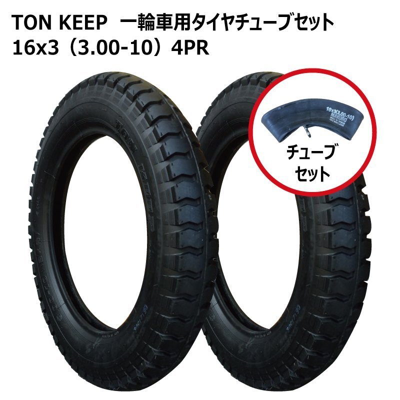 tンキープ 16x3(3.00-10)4PR 一輪車タイヤチューブセット | |