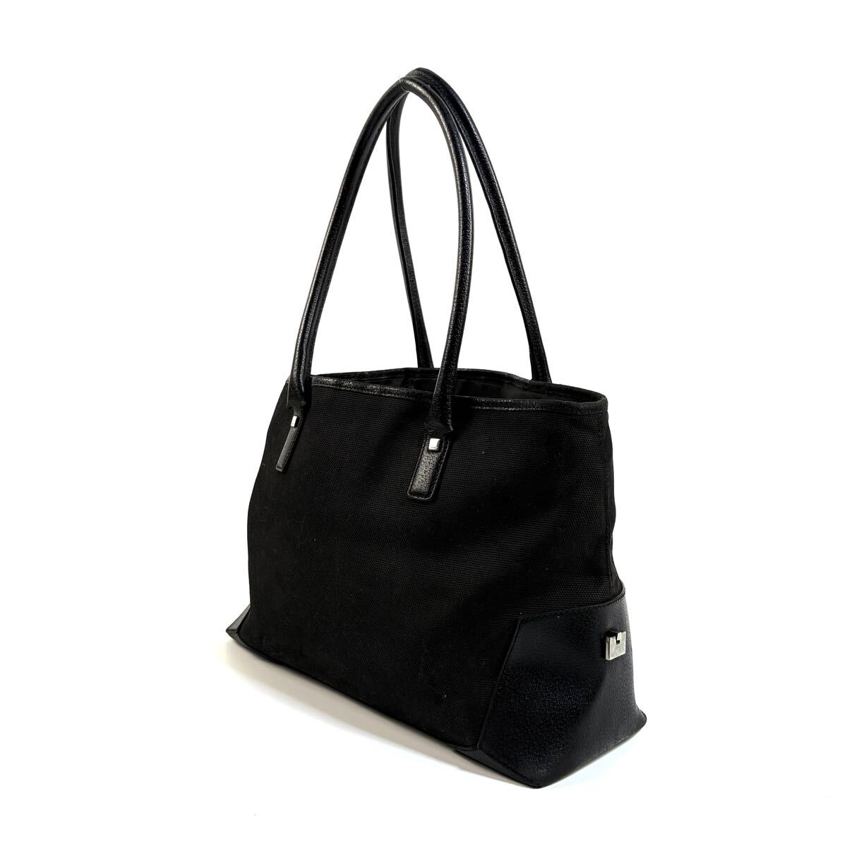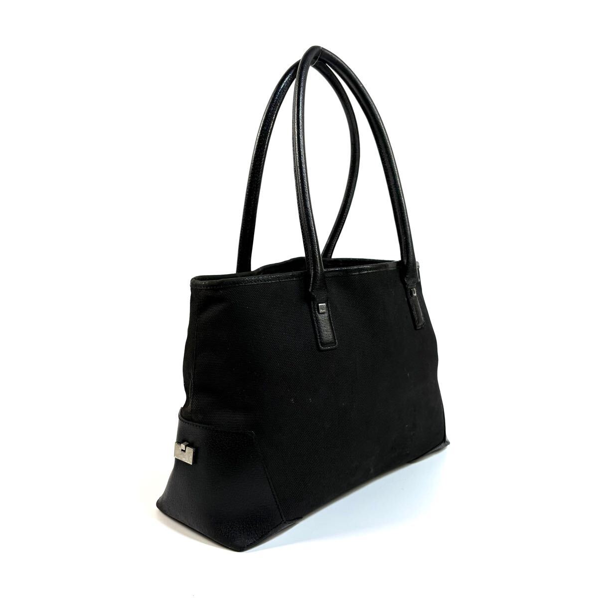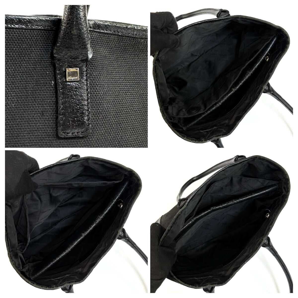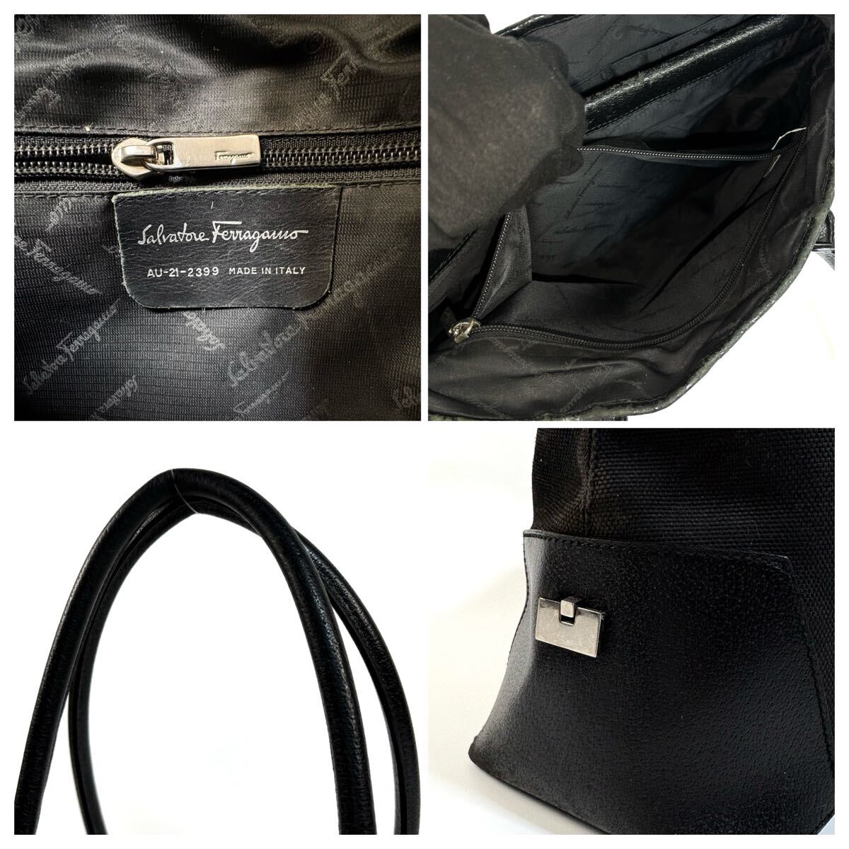 Salvatore Ferragamo フェラガモ キャンバス レザー ハンドバッグ 肩掛け トートバッグ シボ革 ブラック シルバー金具 プレート イタリア製 |