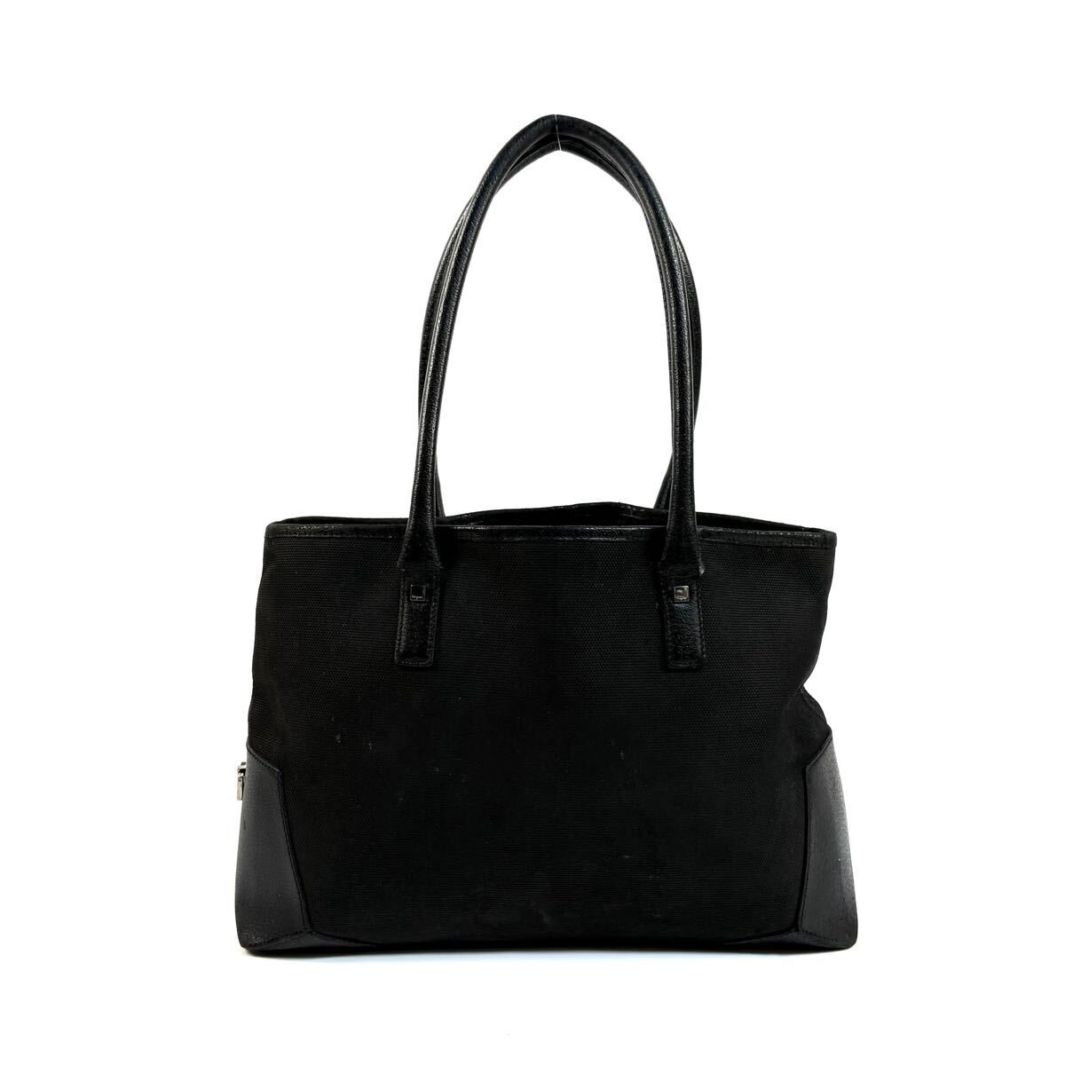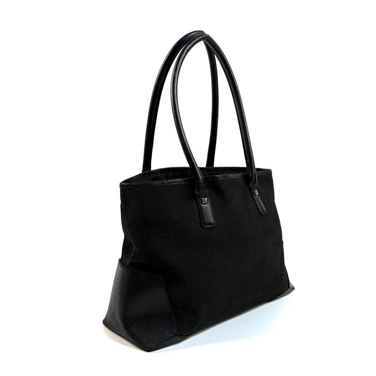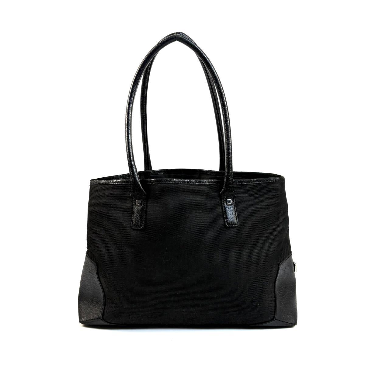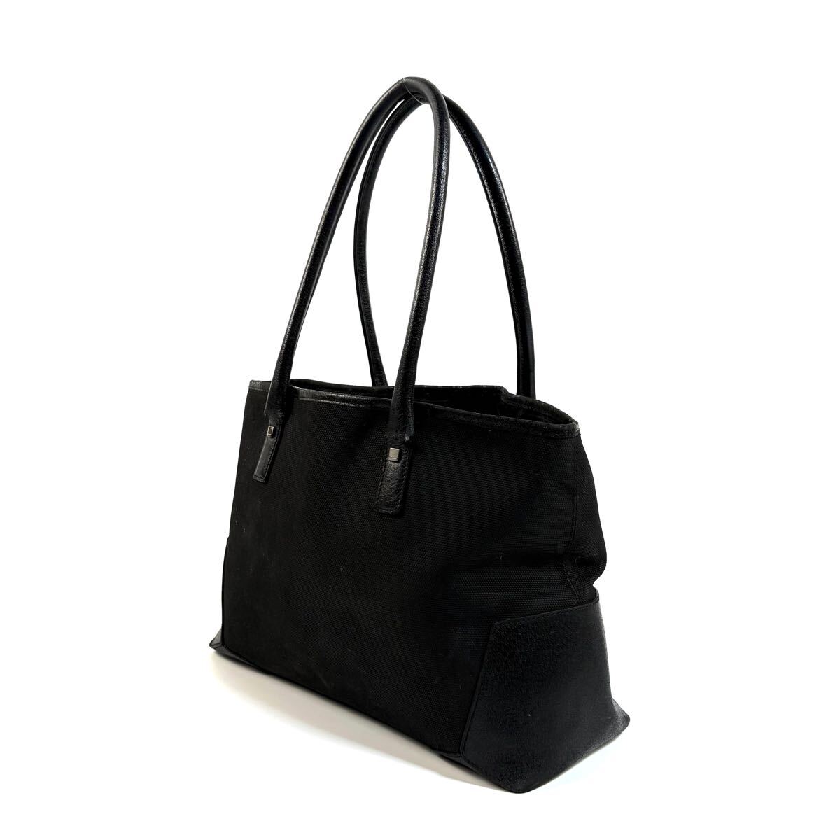 Salvatore Ferragamo フェラガモ キャンバス レザー ハンドバッグ 肩掛け トートバッグ シボ革 ブラック シルバー金具 プレート イタリア製 |