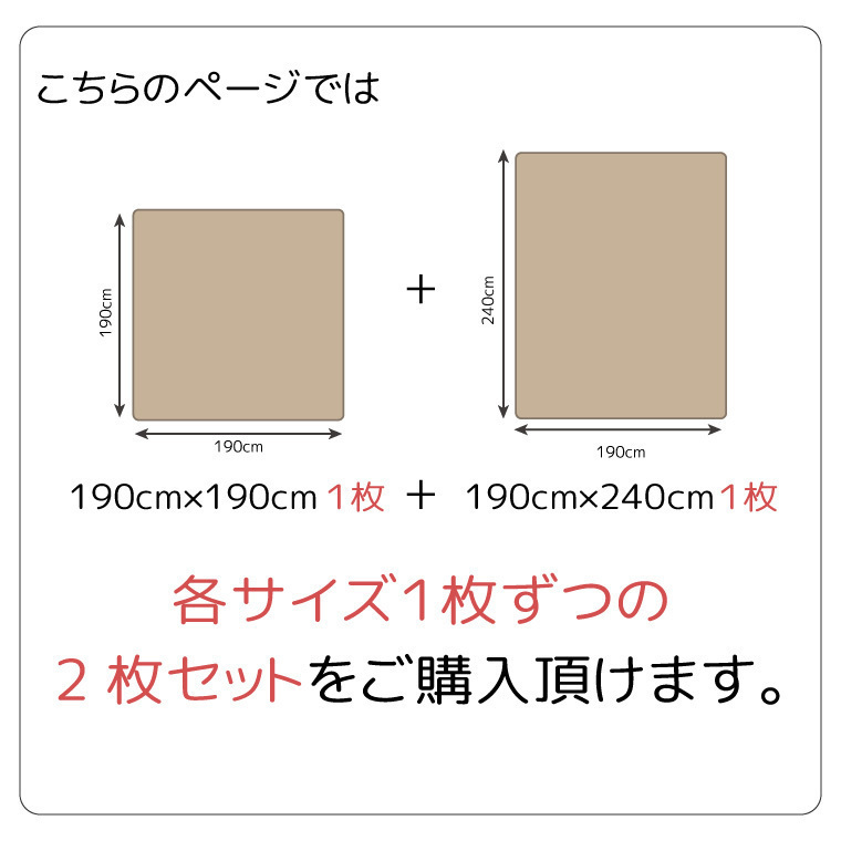 〇サイズ | 約190×190cm 約190×240cm (※製品の特質上、若干のサイズ誤差があります。) |