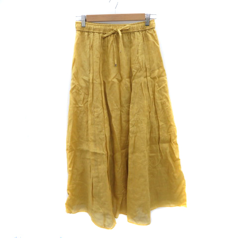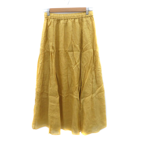 プラステ PLST フレアスカート ギャザースカート ロング丈 マキシ丈 麻 リネン M マスタード /YK11 レディース