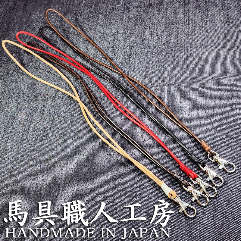 シンプルな革紐のネックストラップ 馬具職人工房 ハンドメイド 栃木レザー サドルレザー ブラウン ブラック ナチュラル レッド こげ茶