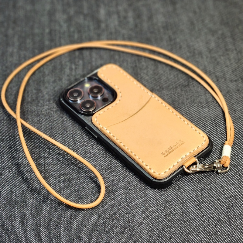 只今販売中のスマホケースと同じ革を使用しておりますので、合わせて装着しますと非常に相性が良いです。